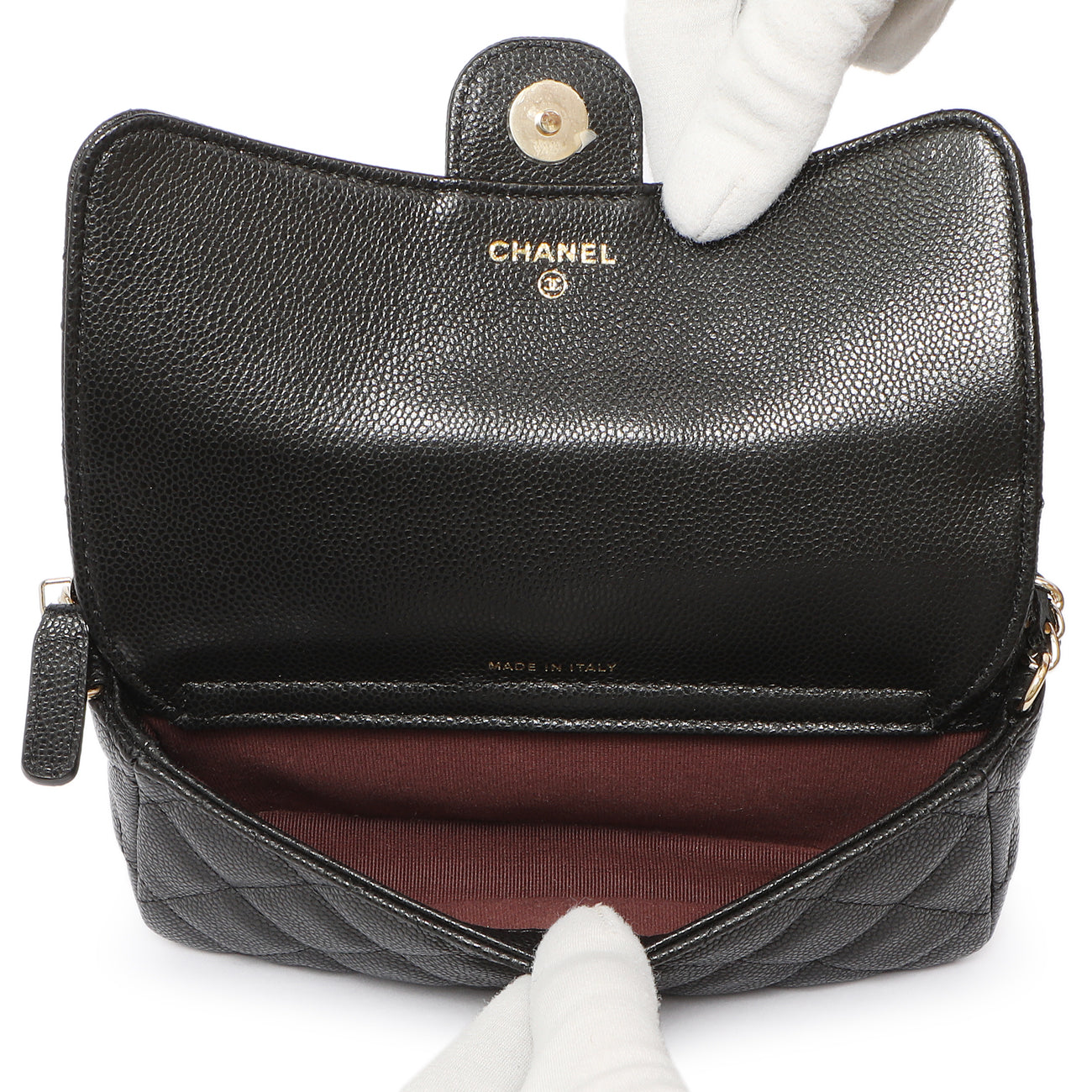 Chanel Black Caviar Quilted Flap Phone Holder With Chain
