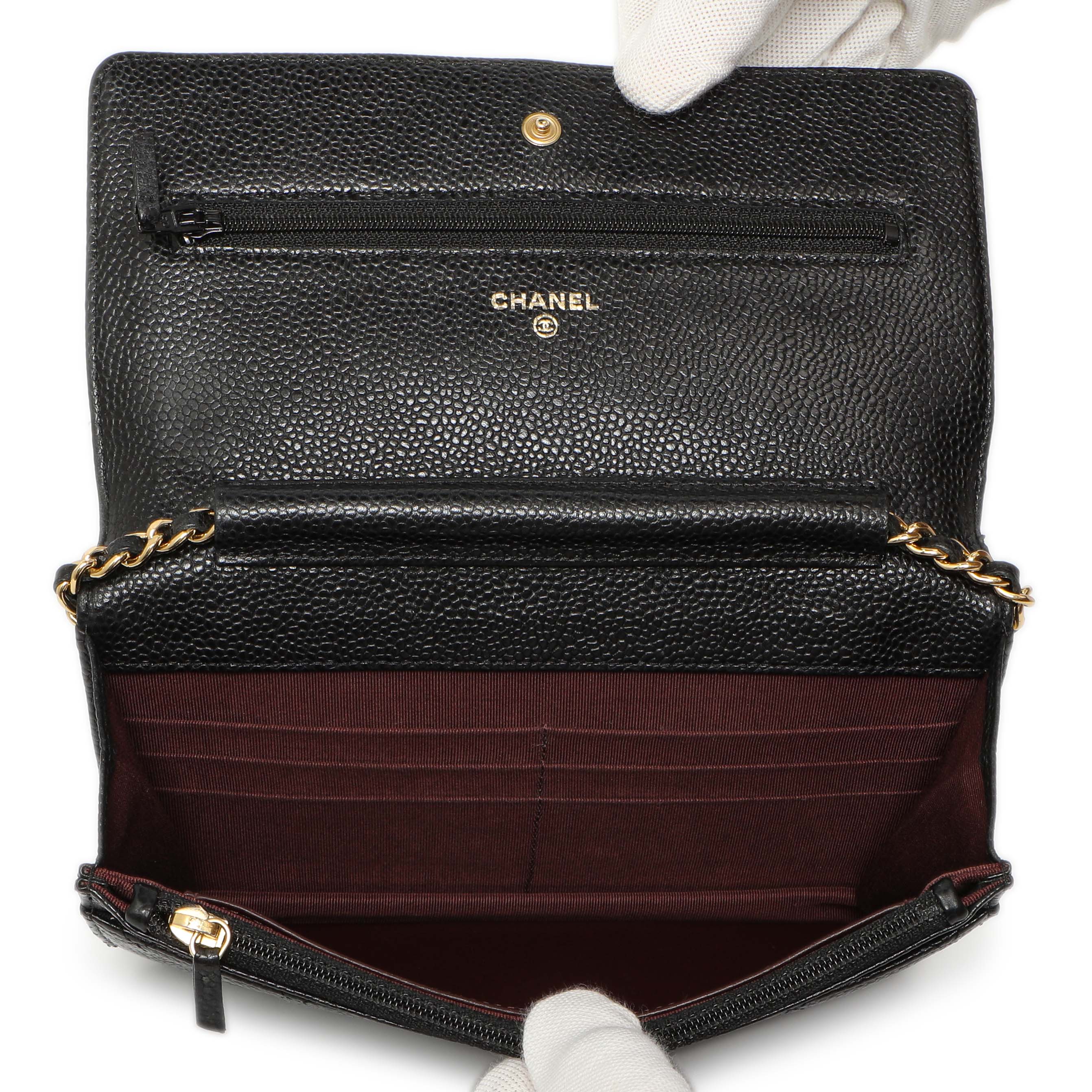 Chanel Black Quilted Caviar Classic Wallet on Chain WOC