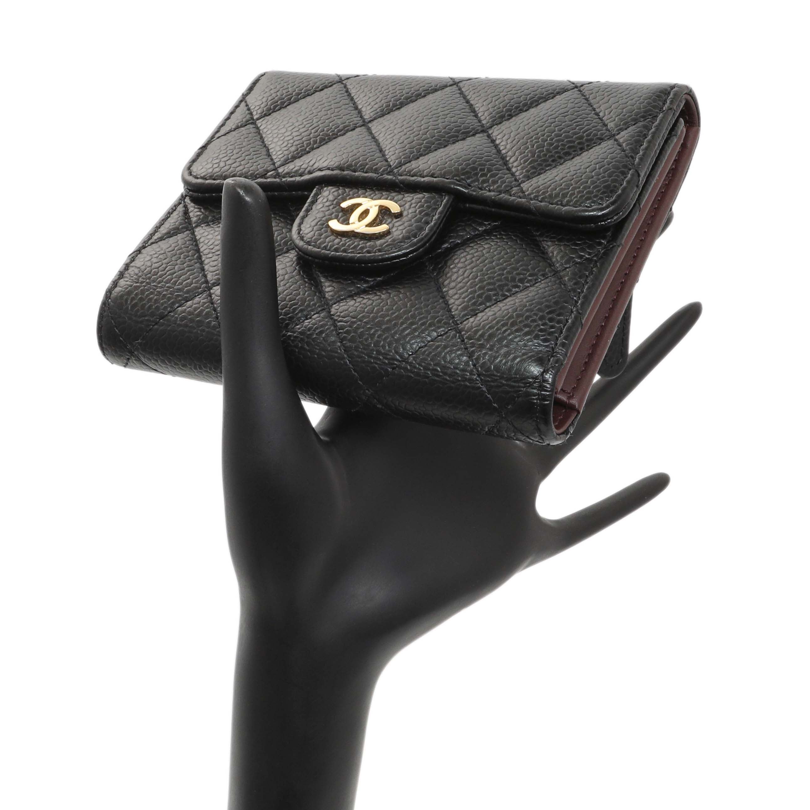 Chanel Black Quilted Caviar Compact Flap Wallet