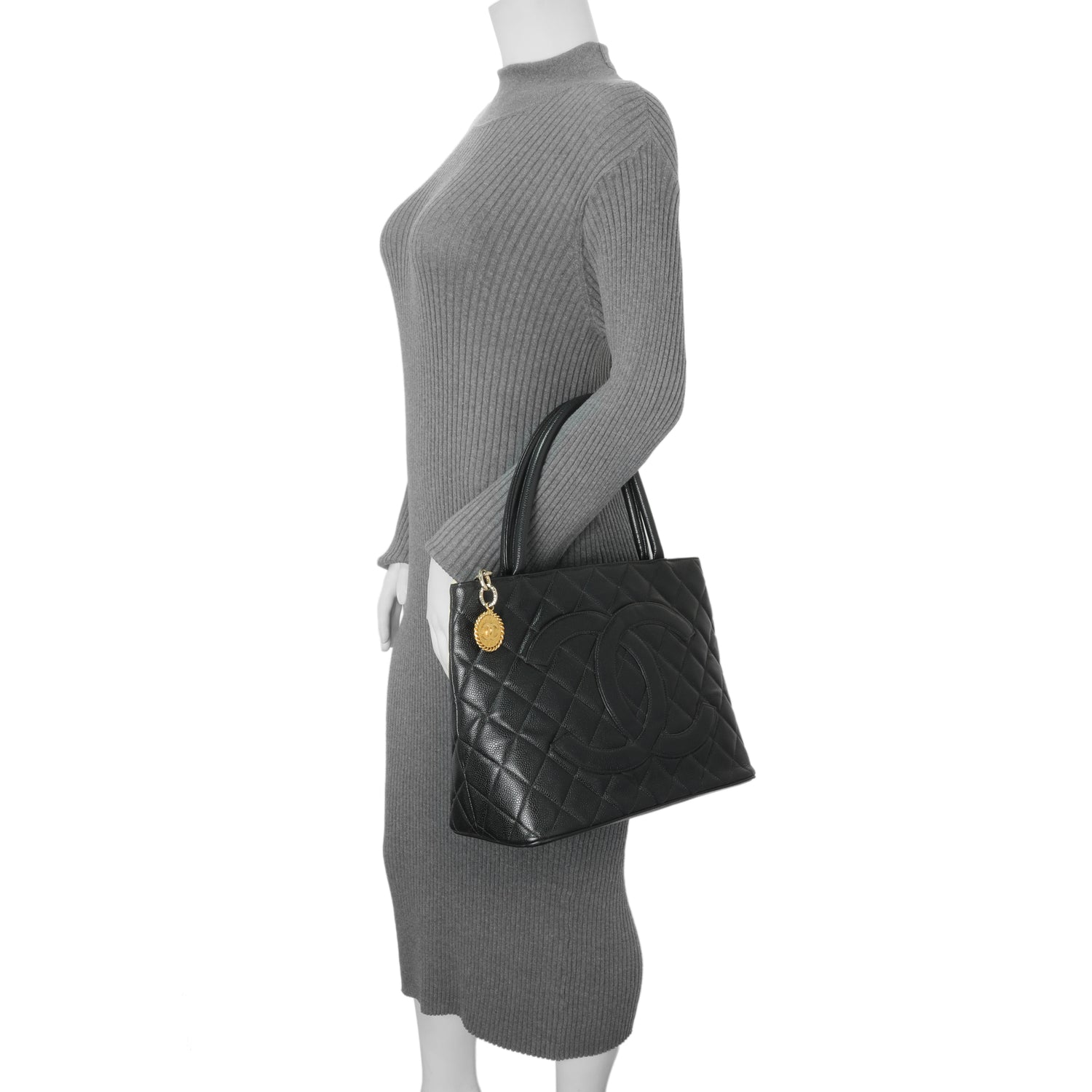Chanel Black Quilted Caviar Medallion Tote
