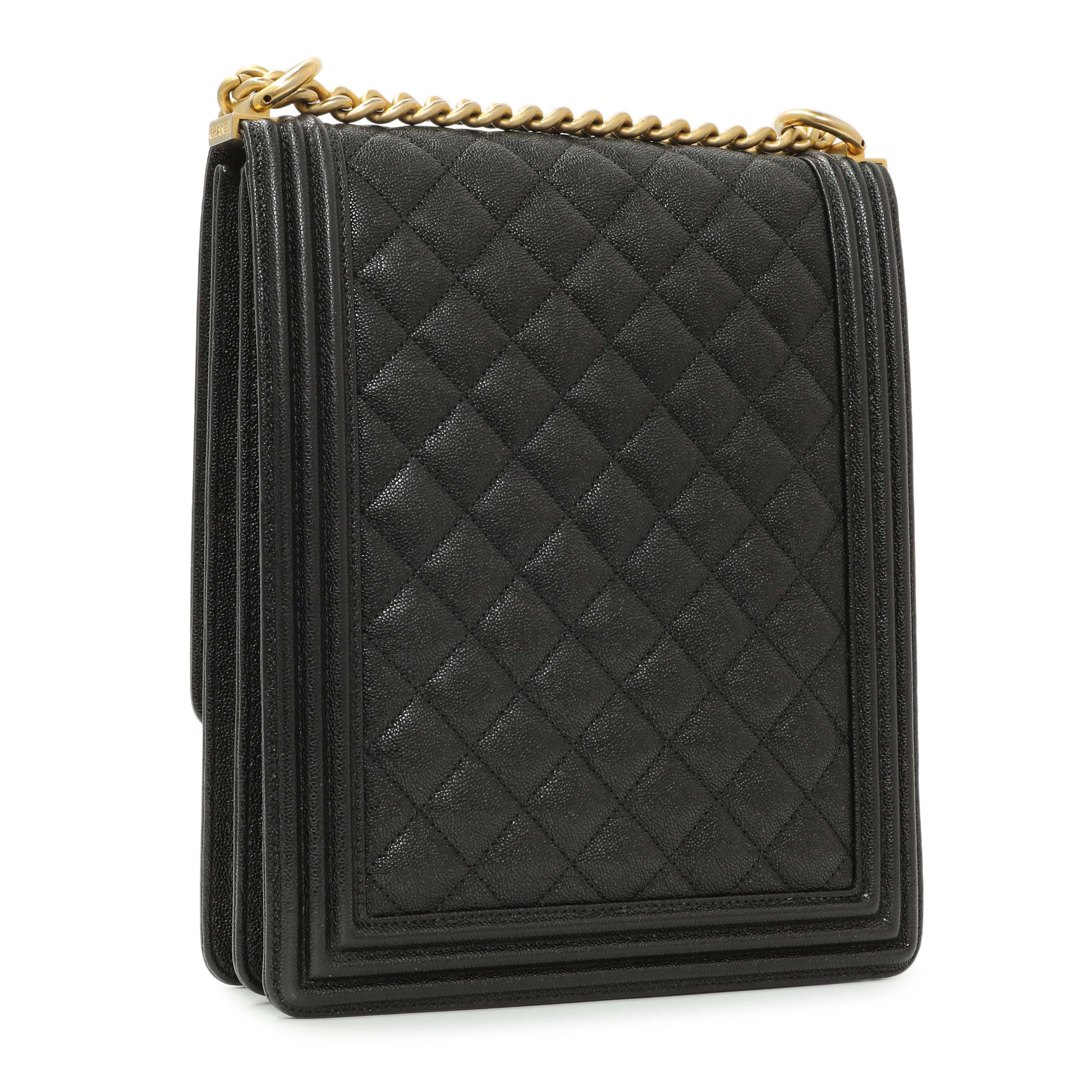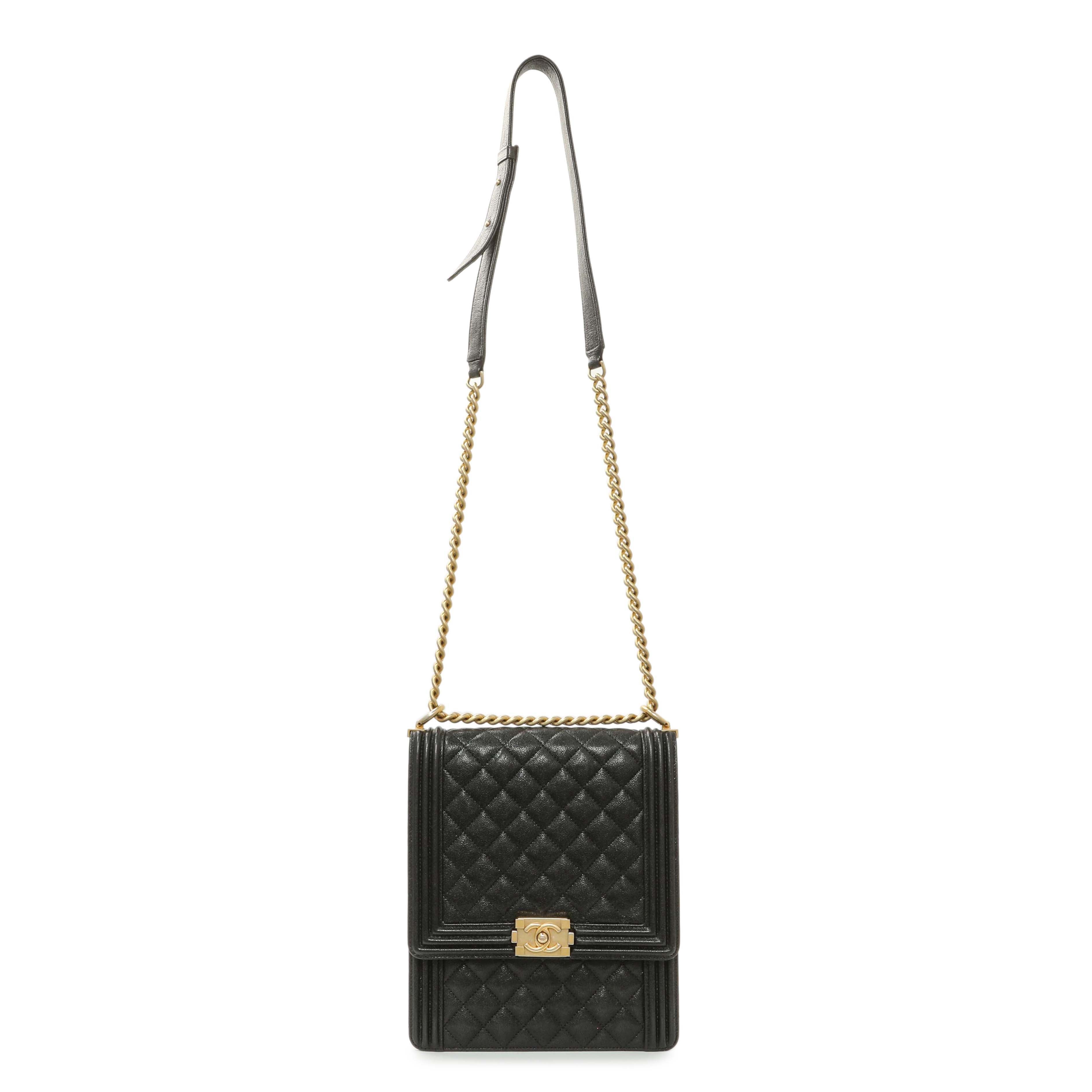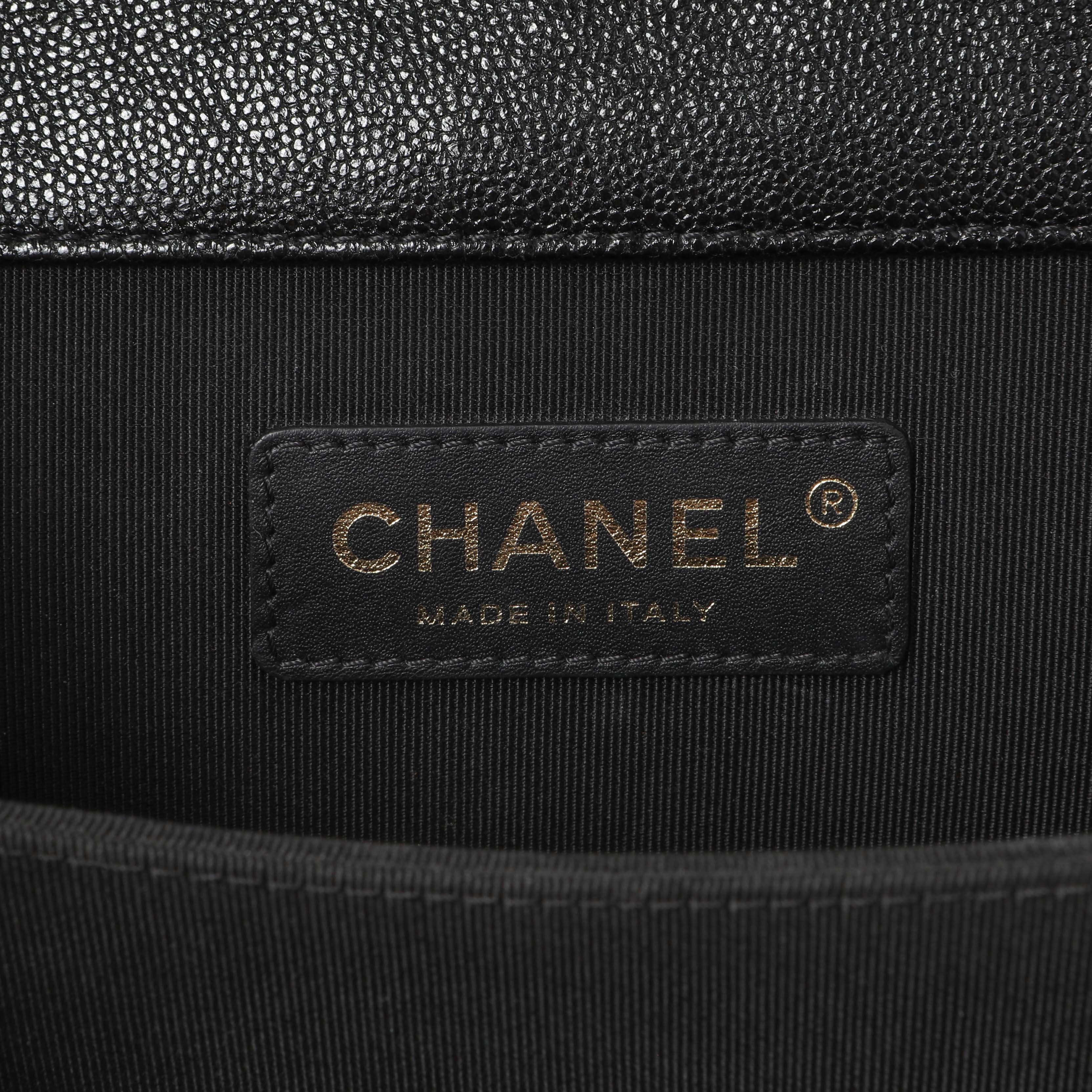 Chanel Black Quilted Caviar North South Boy Flap