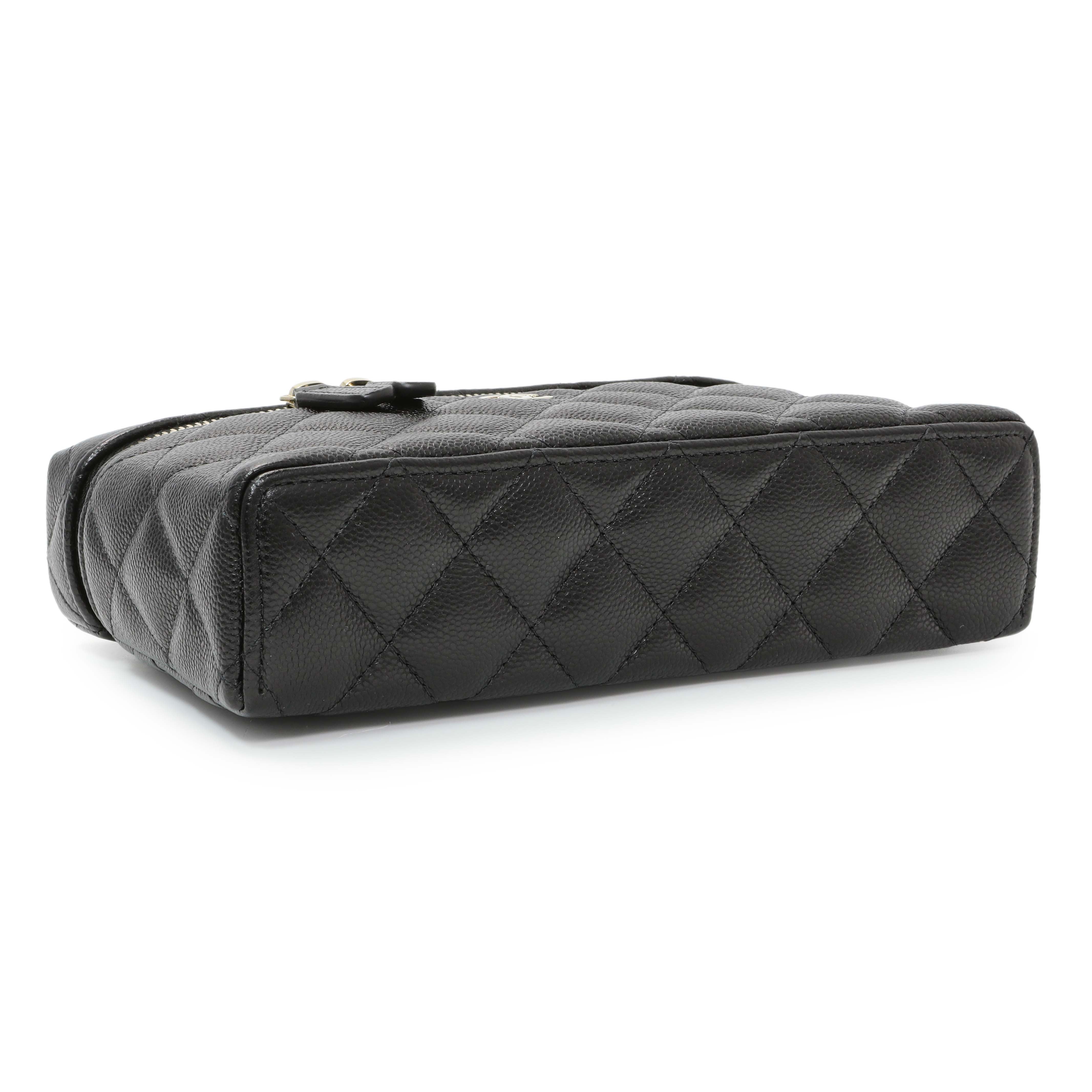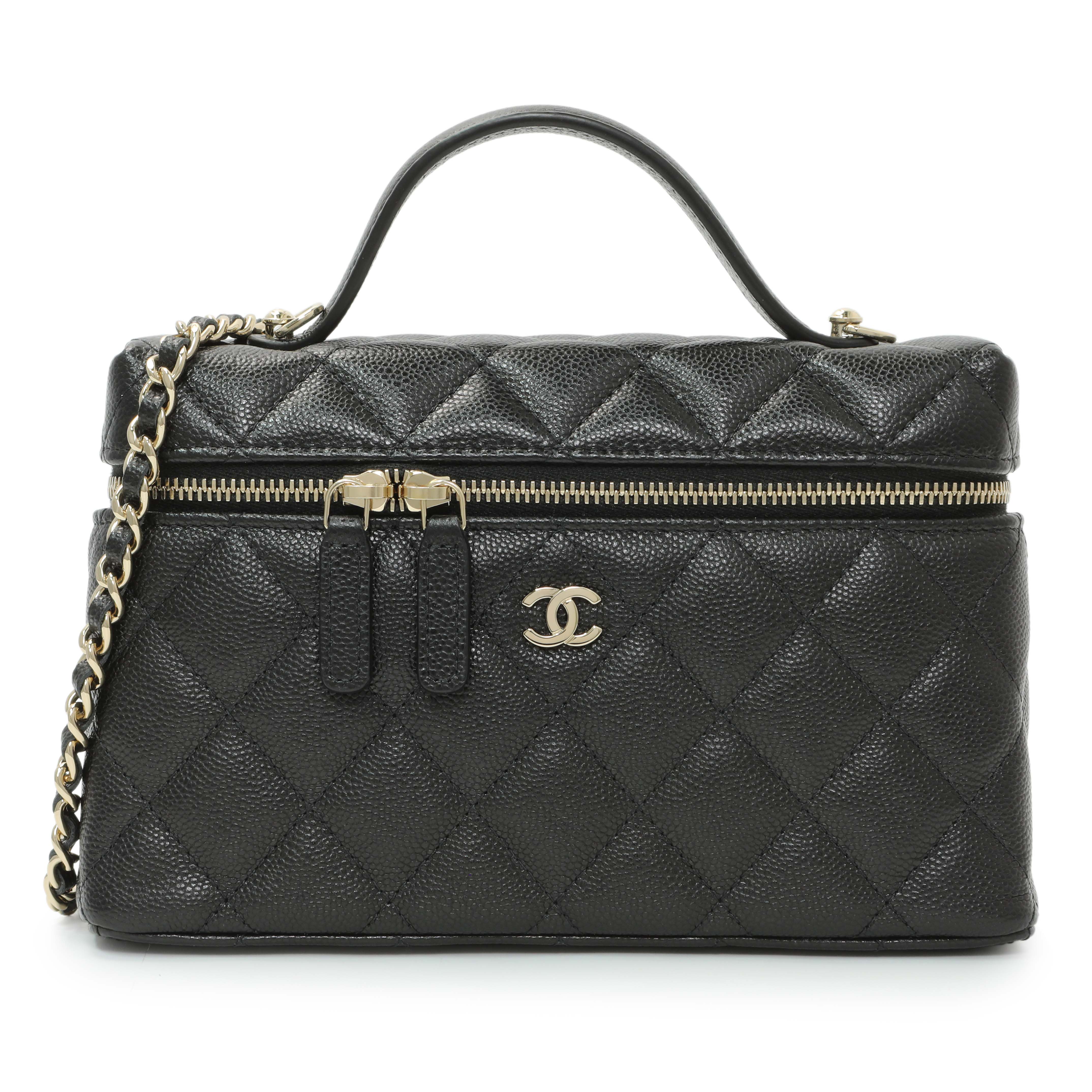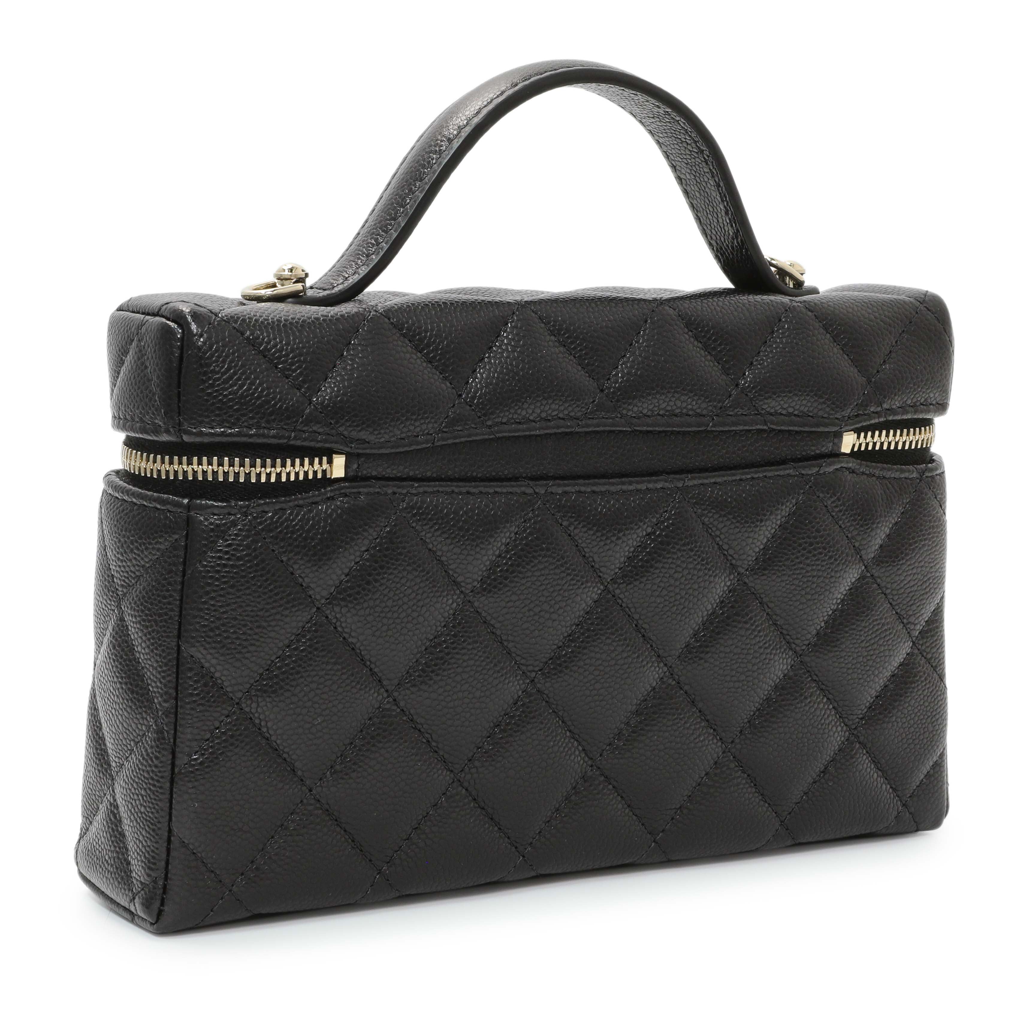 Chanel Black Quilted Caviar Top Handle Slim Vanity With Chain