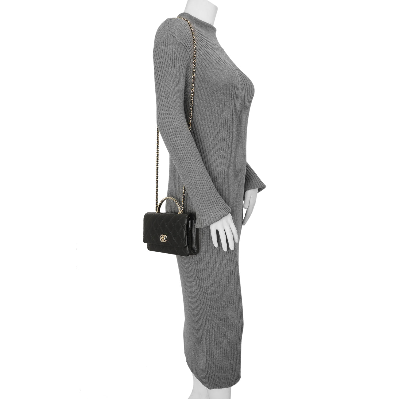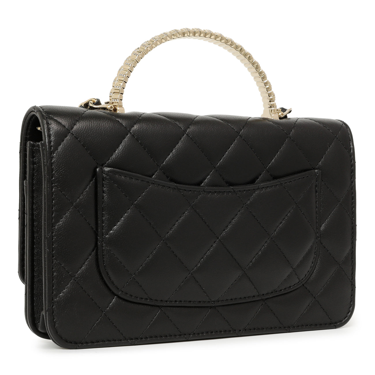 Chanel Black Quilted Lambskin Crystal Top Handle Wallet on Chain WOC