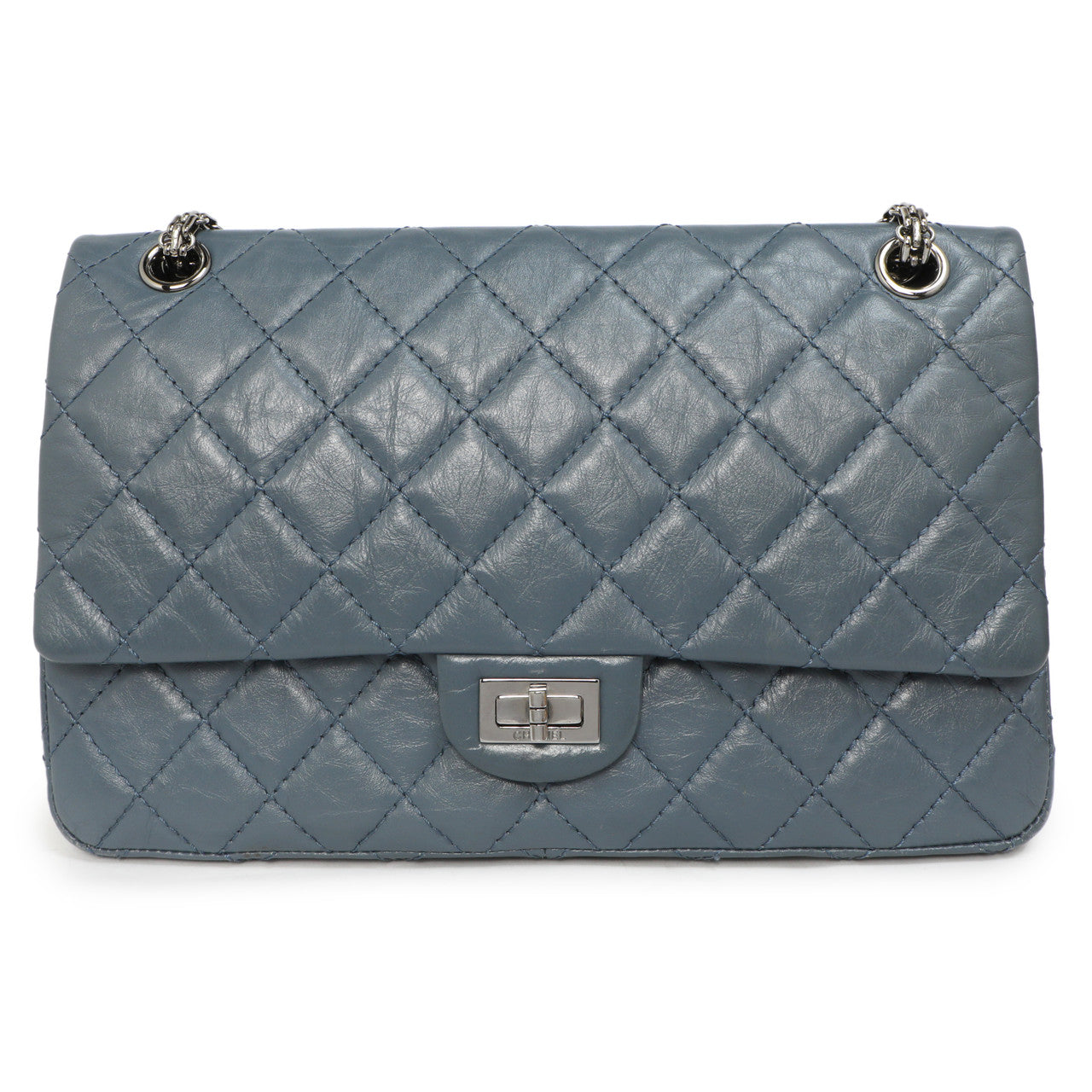 Authentic Chanel Blue Quilted Aged Calfskin 2.55 Reissue Double Flap 226