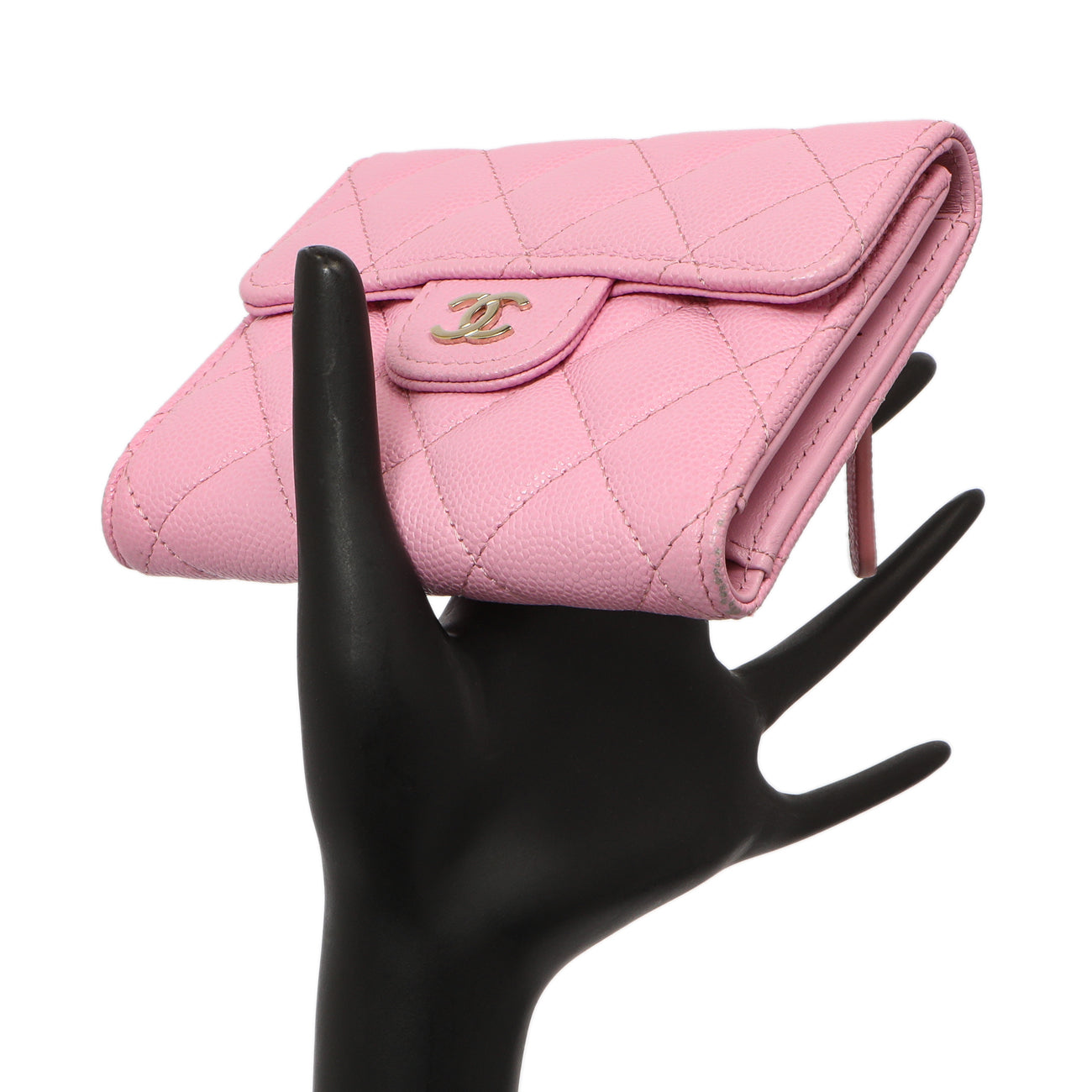 Chanel Pink Quilted Caviar Compact Flap Wallet is backordered and will ship as soon as it is back in stock.