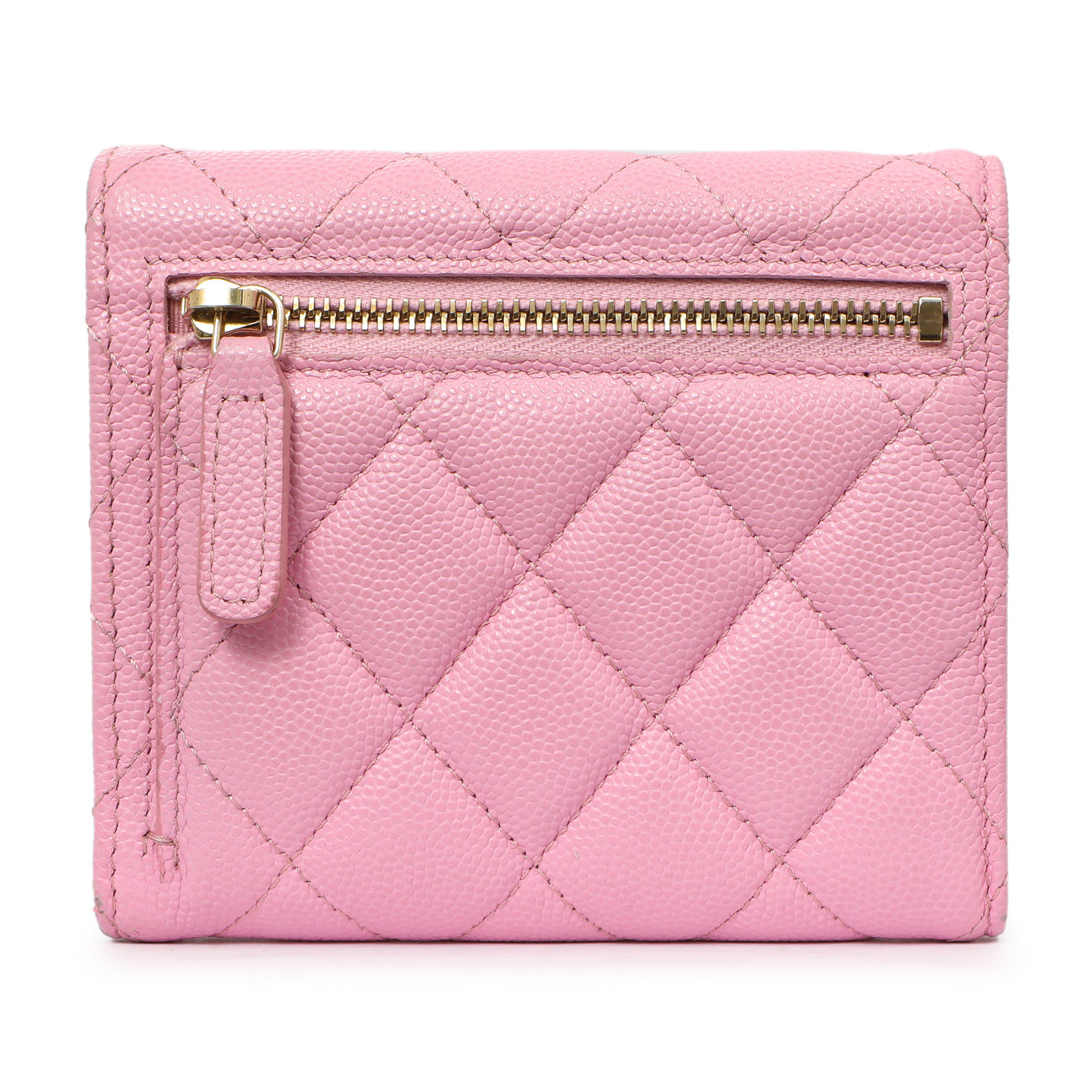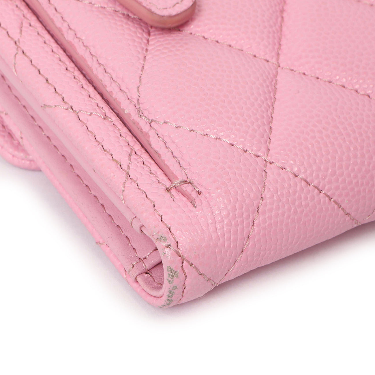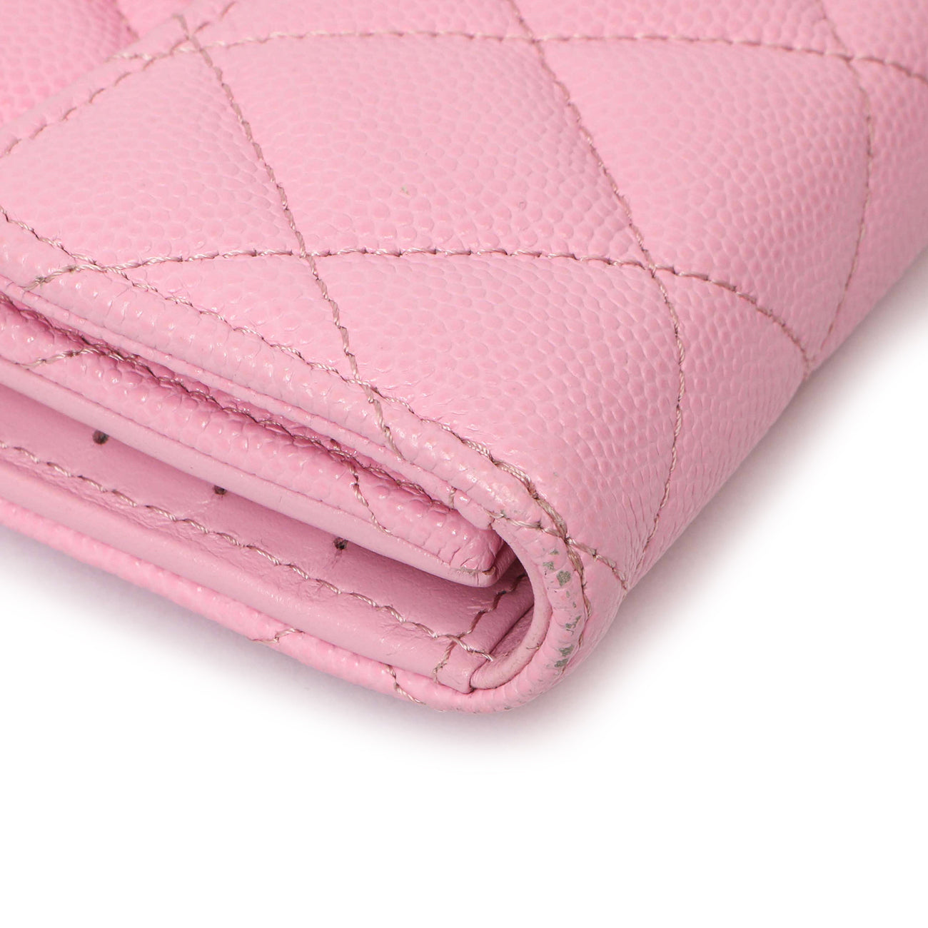 Chanel Pink Quilted Caviar Compact Flap Wallet