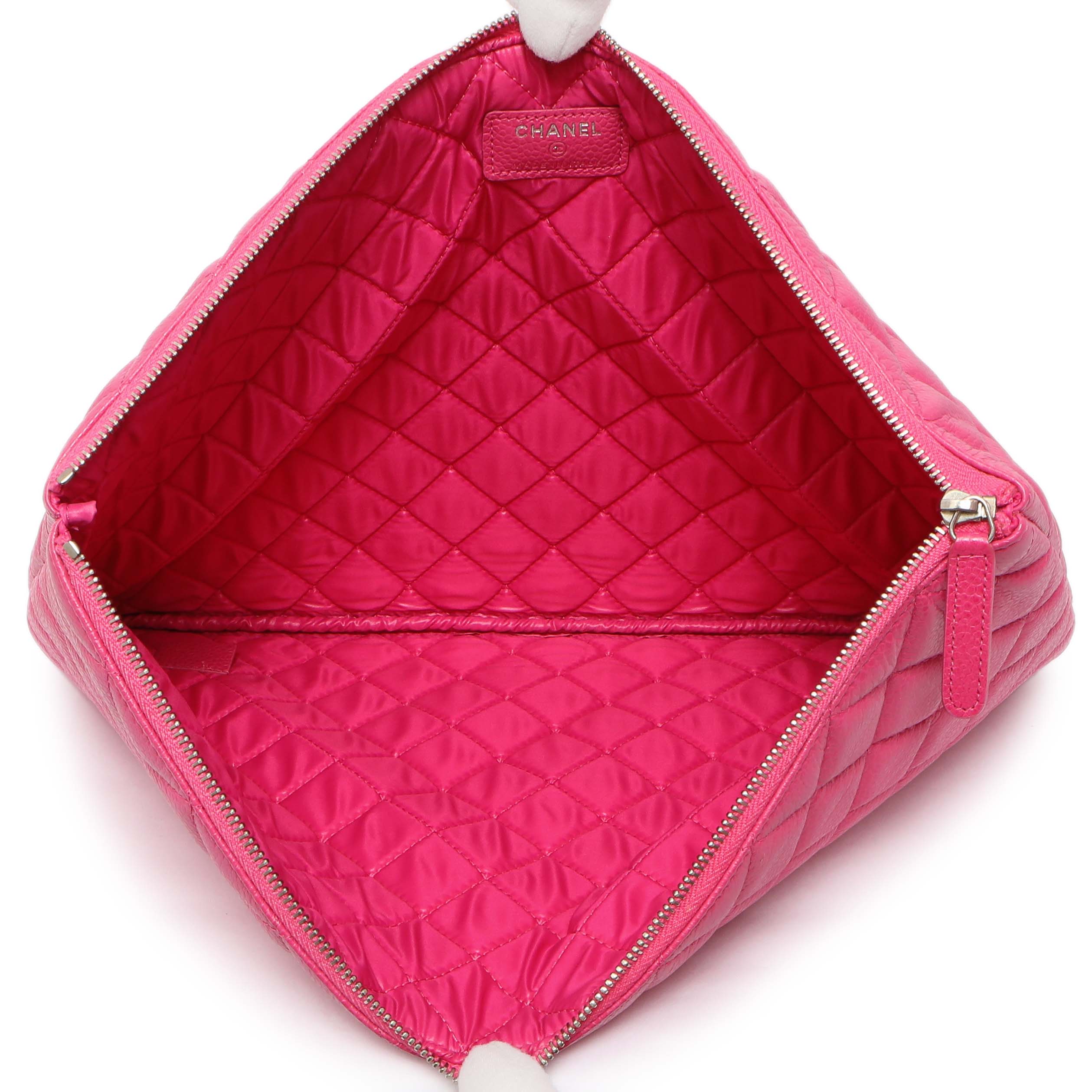 Chanel Pink Quilted Caviar Large Cosmetic Case