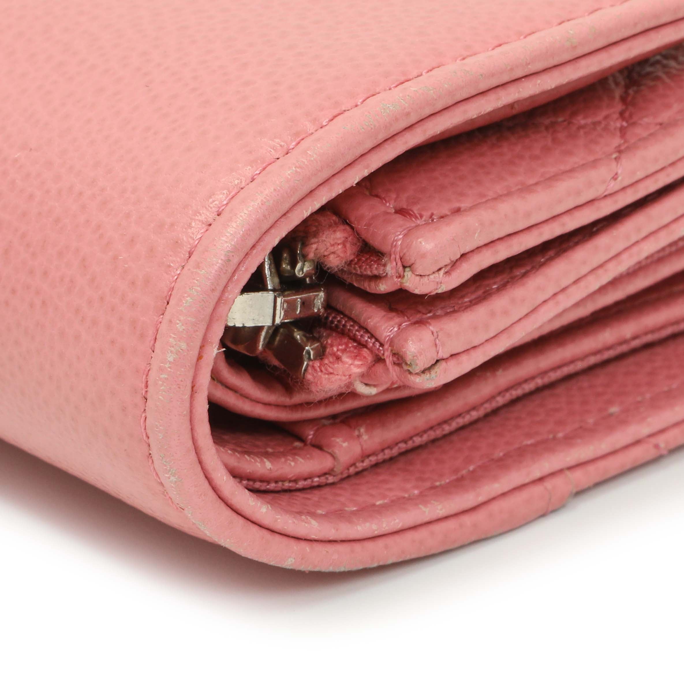 Chanel Pink Quilted Grained Calfskin CC Box Flap Wallet