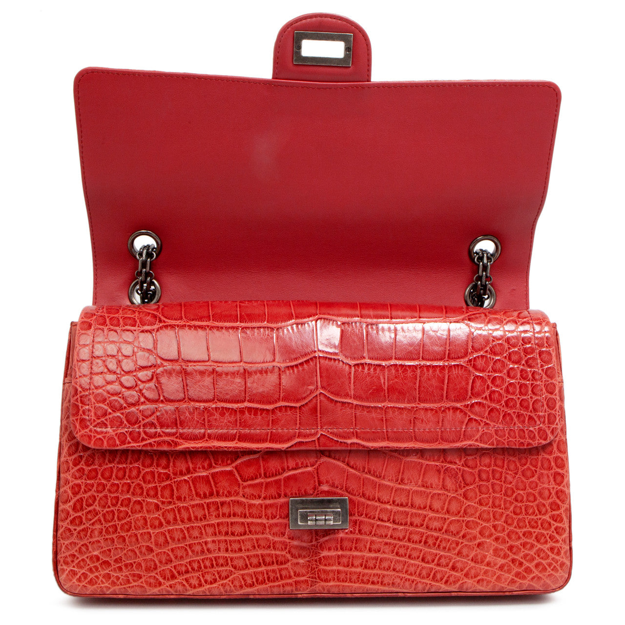 Authentic Chanel Red Alligator Reissue 2.55 Double Flap 226