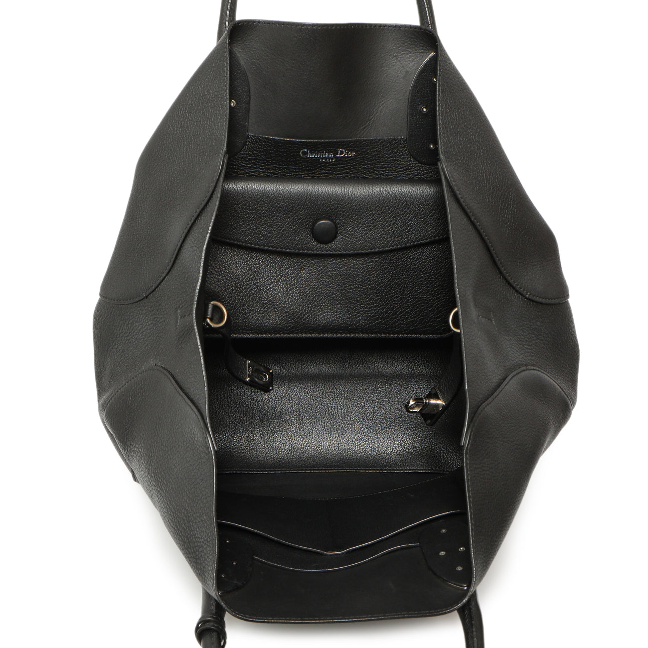 Christian Dior Black Grained Calfskin Large Open Bar Tote