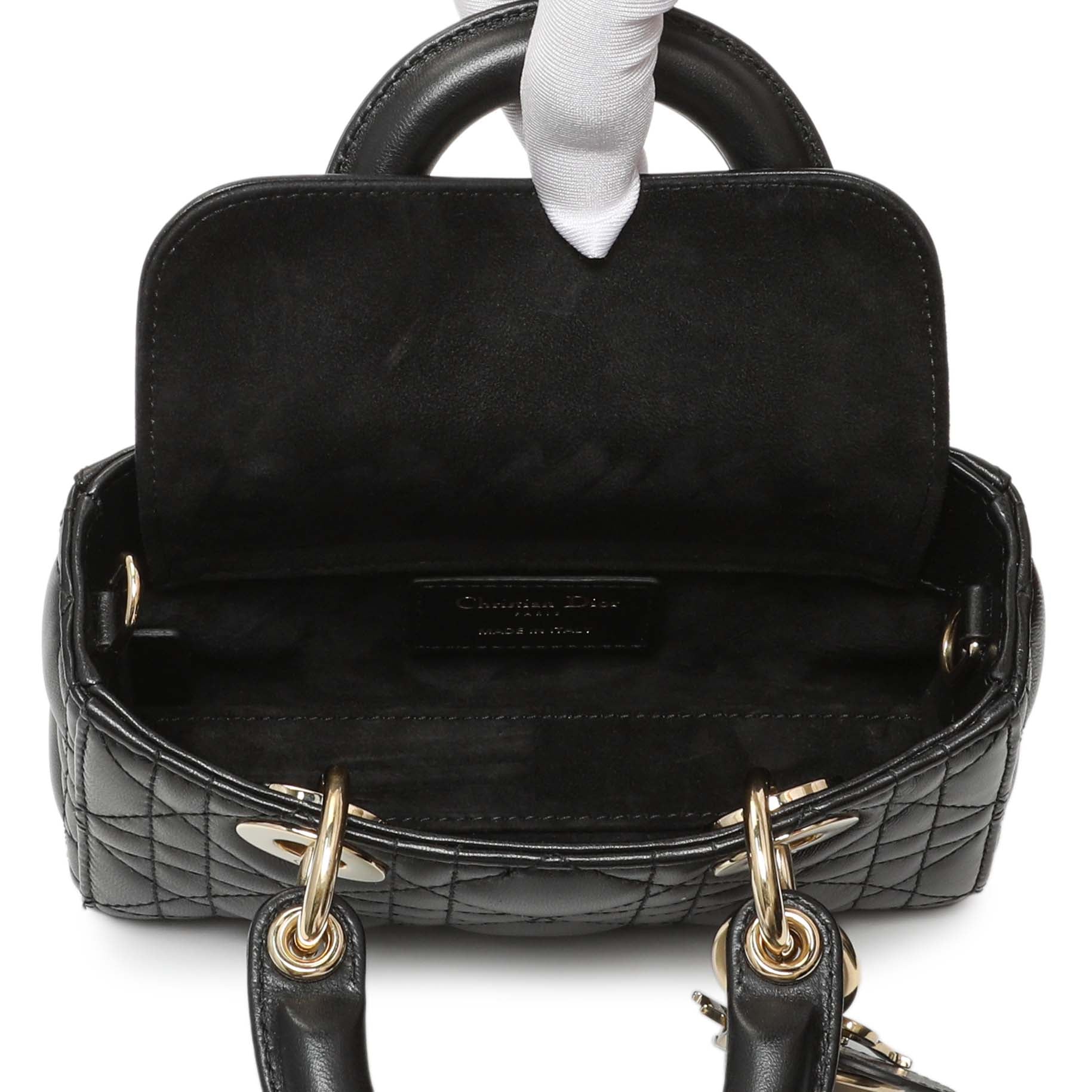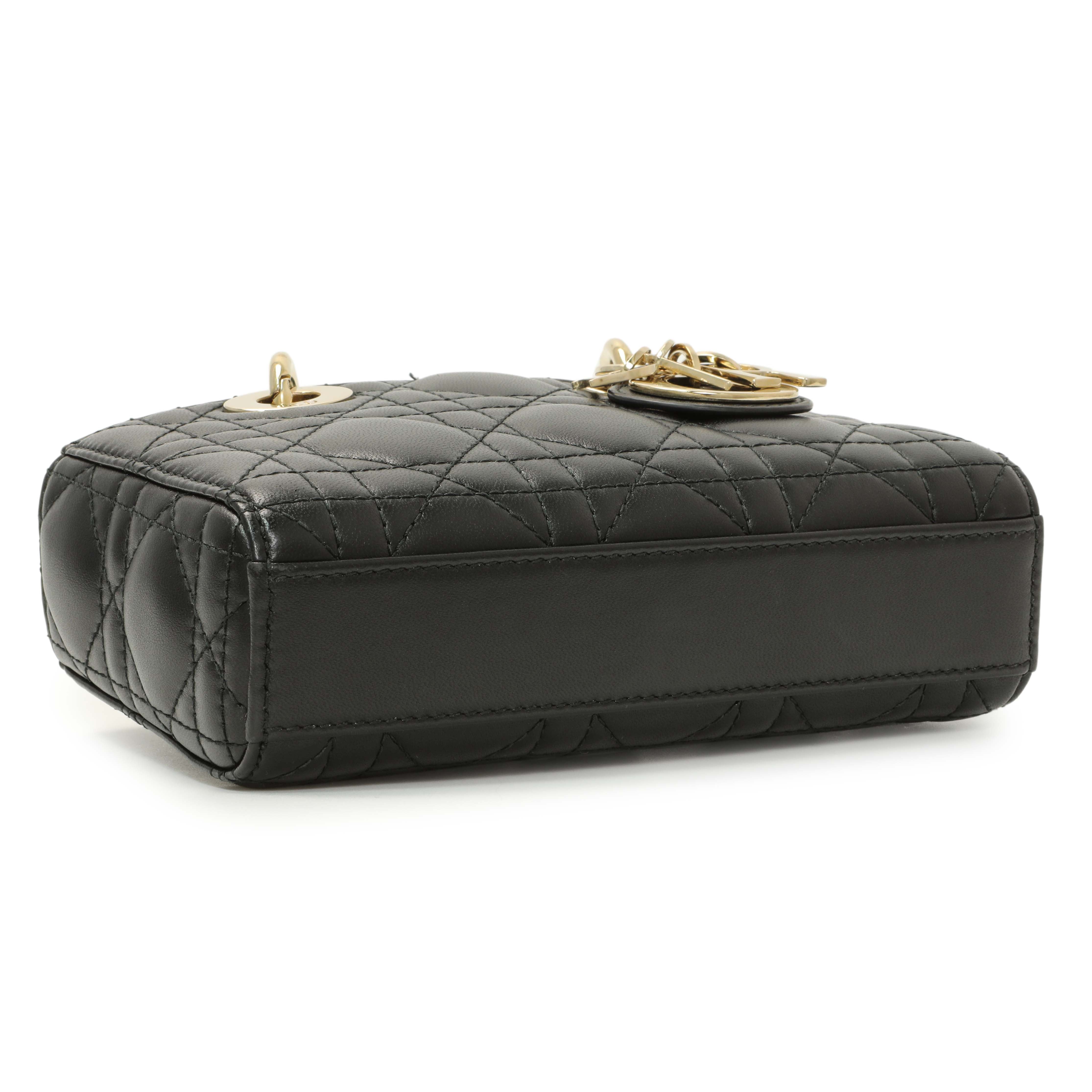 Christian Dior Black Lambskin Cannage Micro Lady D-Joy