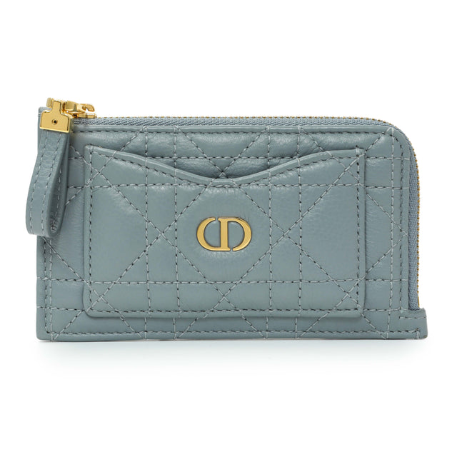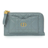 Christian Dior Blue Supple Calfskin Cannage Caro Cosmos Zipped Card Holder