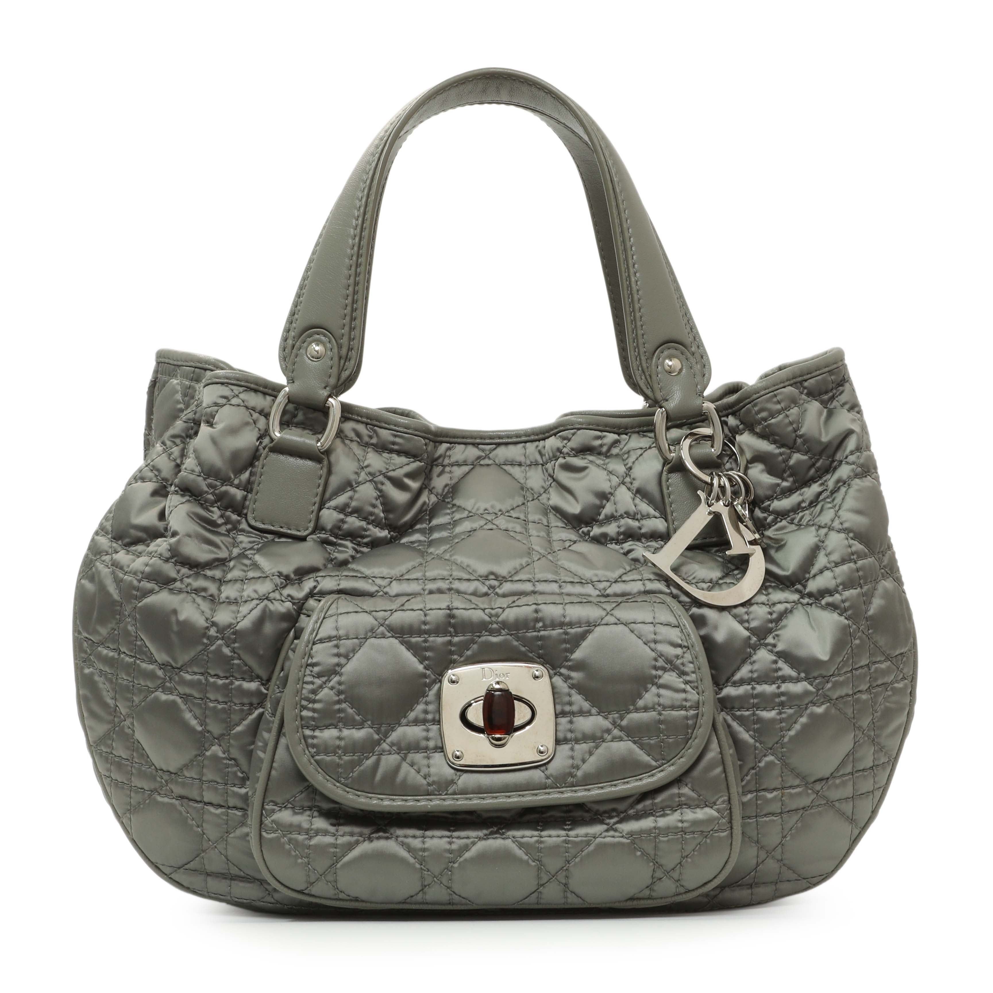 Christian Dior Grey Nylon Cannage Charming Lock Tote