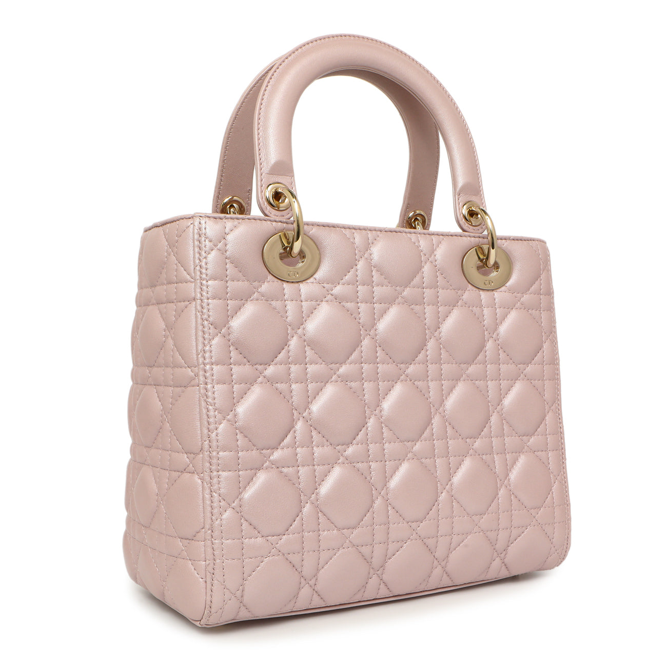 Christian Dior Lotus Metallic Lambskin Cannage Medium Lady Dior