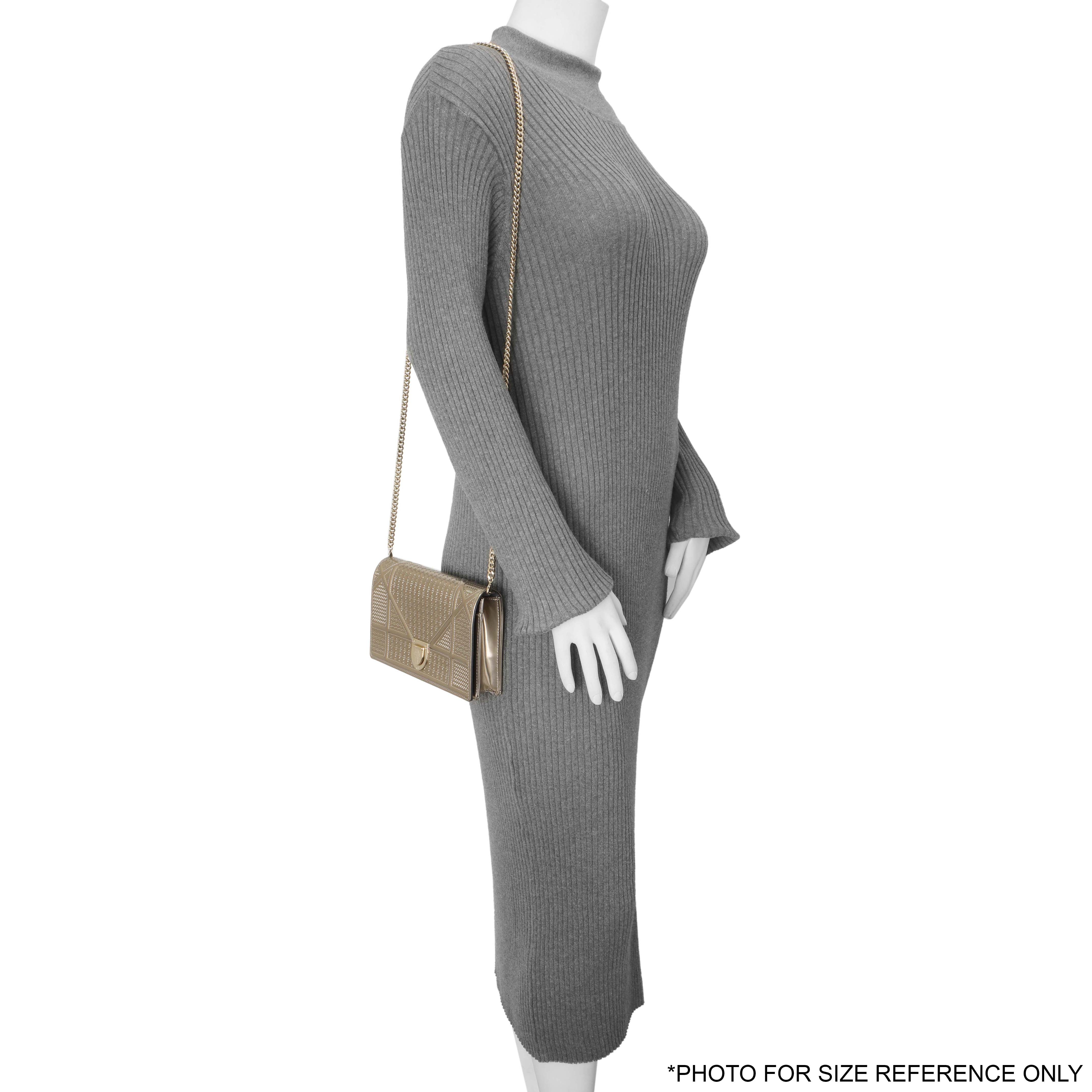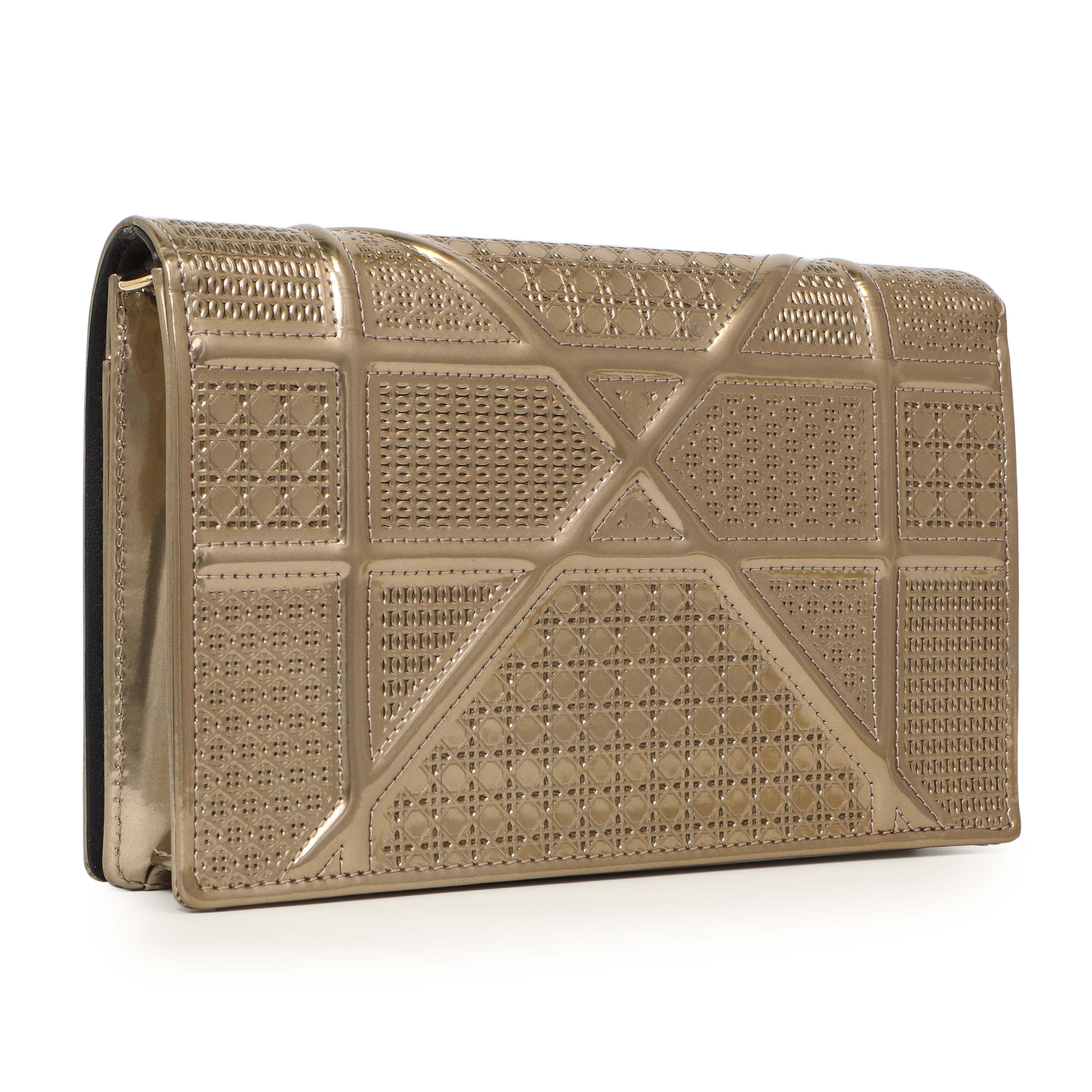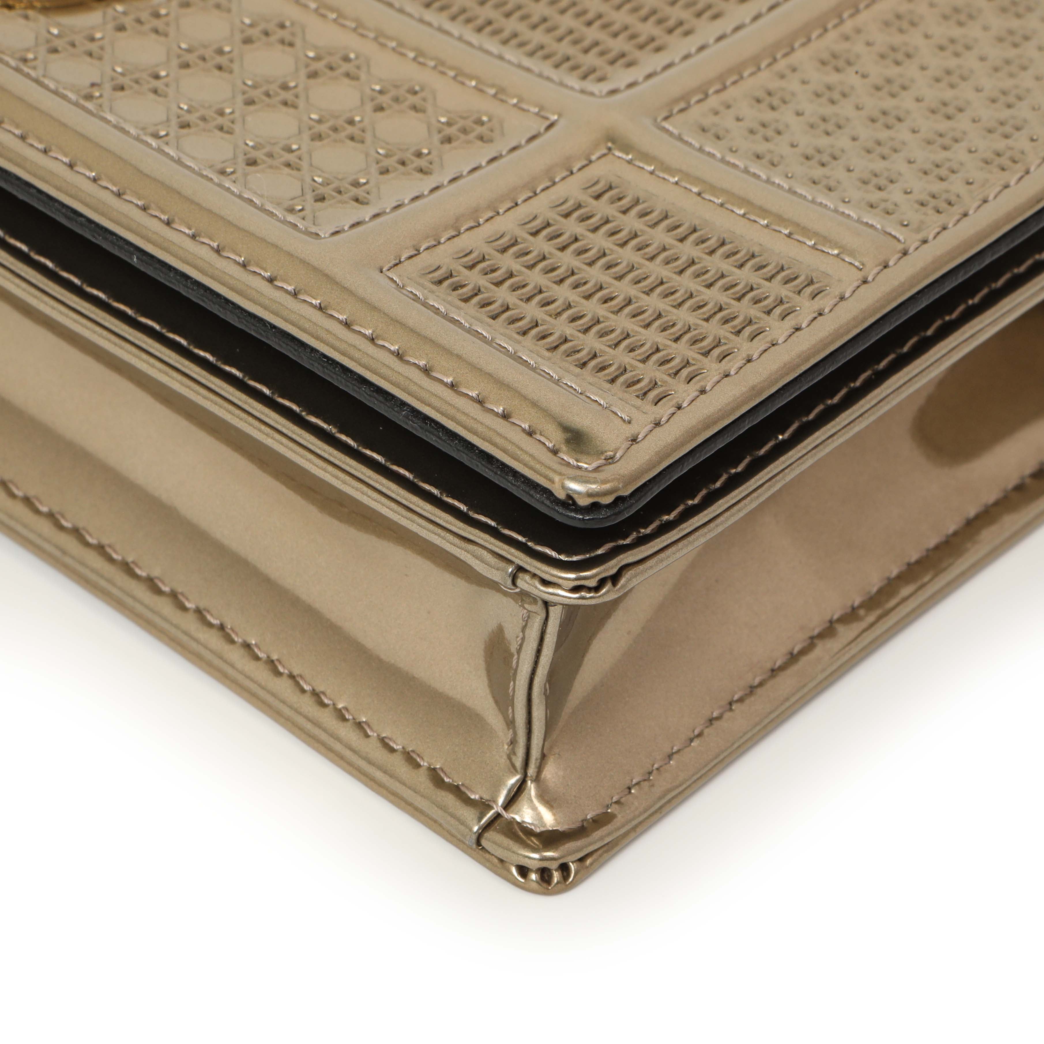Christian Dior Metallic Gold Patent Micro Cannage Diorama Wallet on Chain