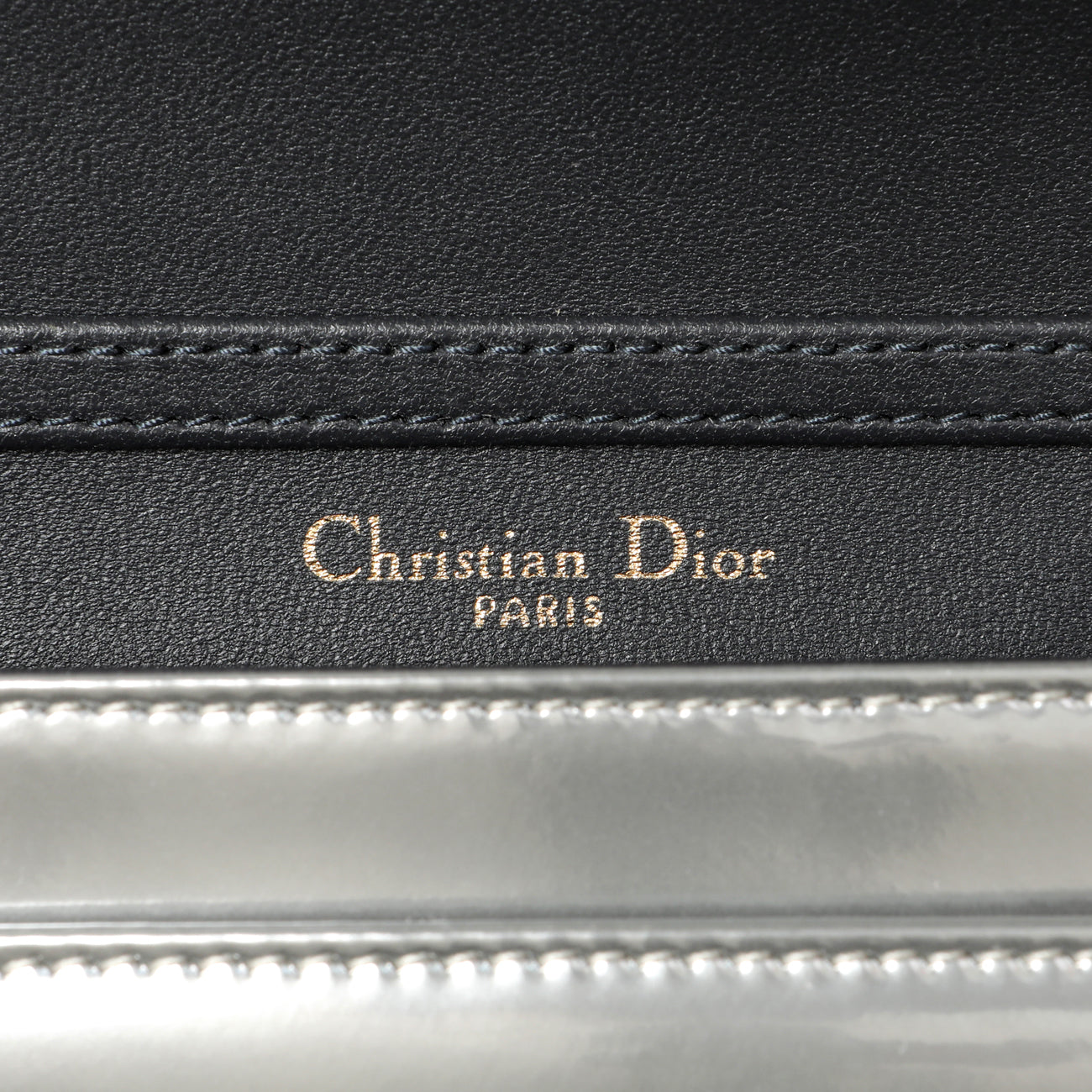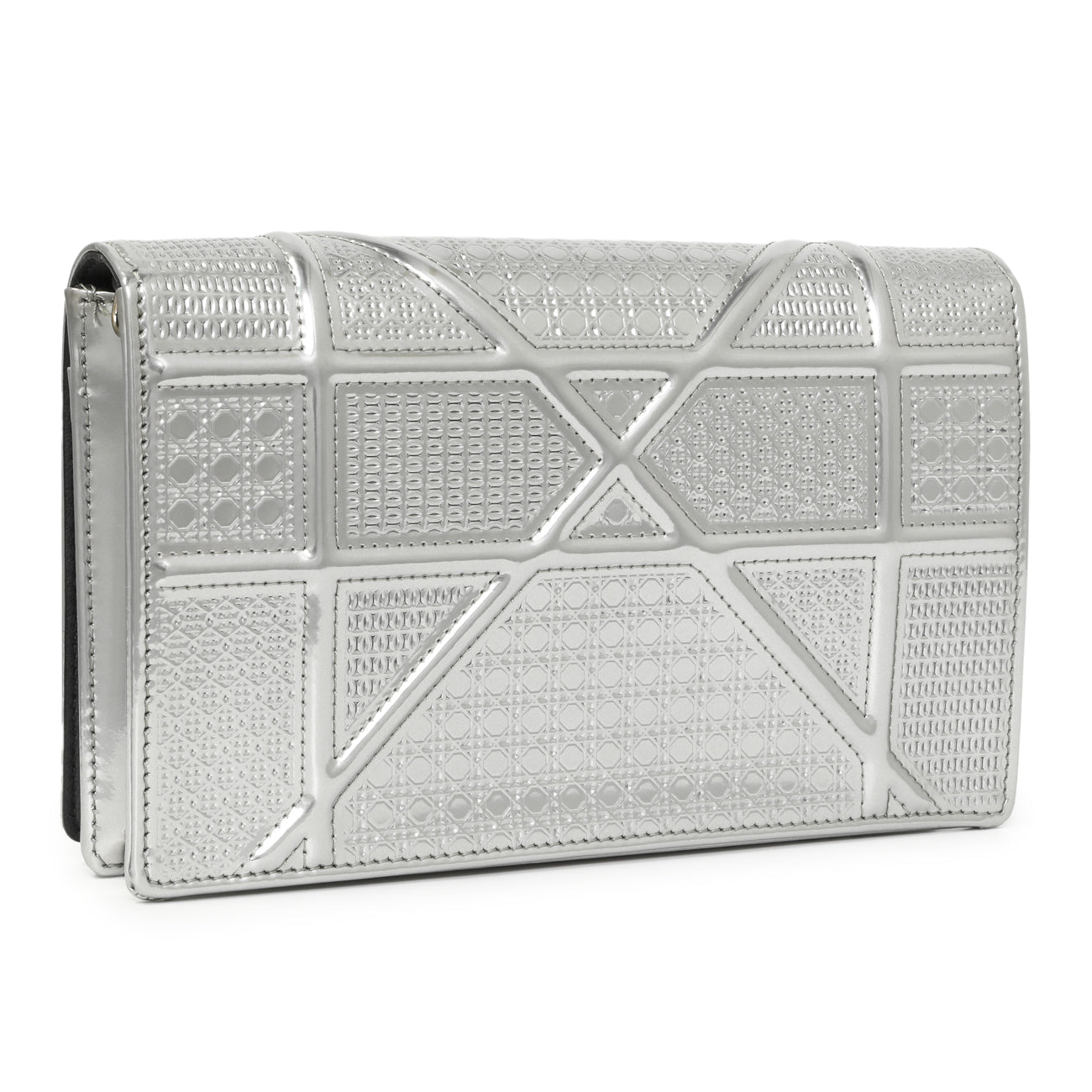 Christian Dior Silver Patent Micro-Cannage Diorama Wallet on Chain