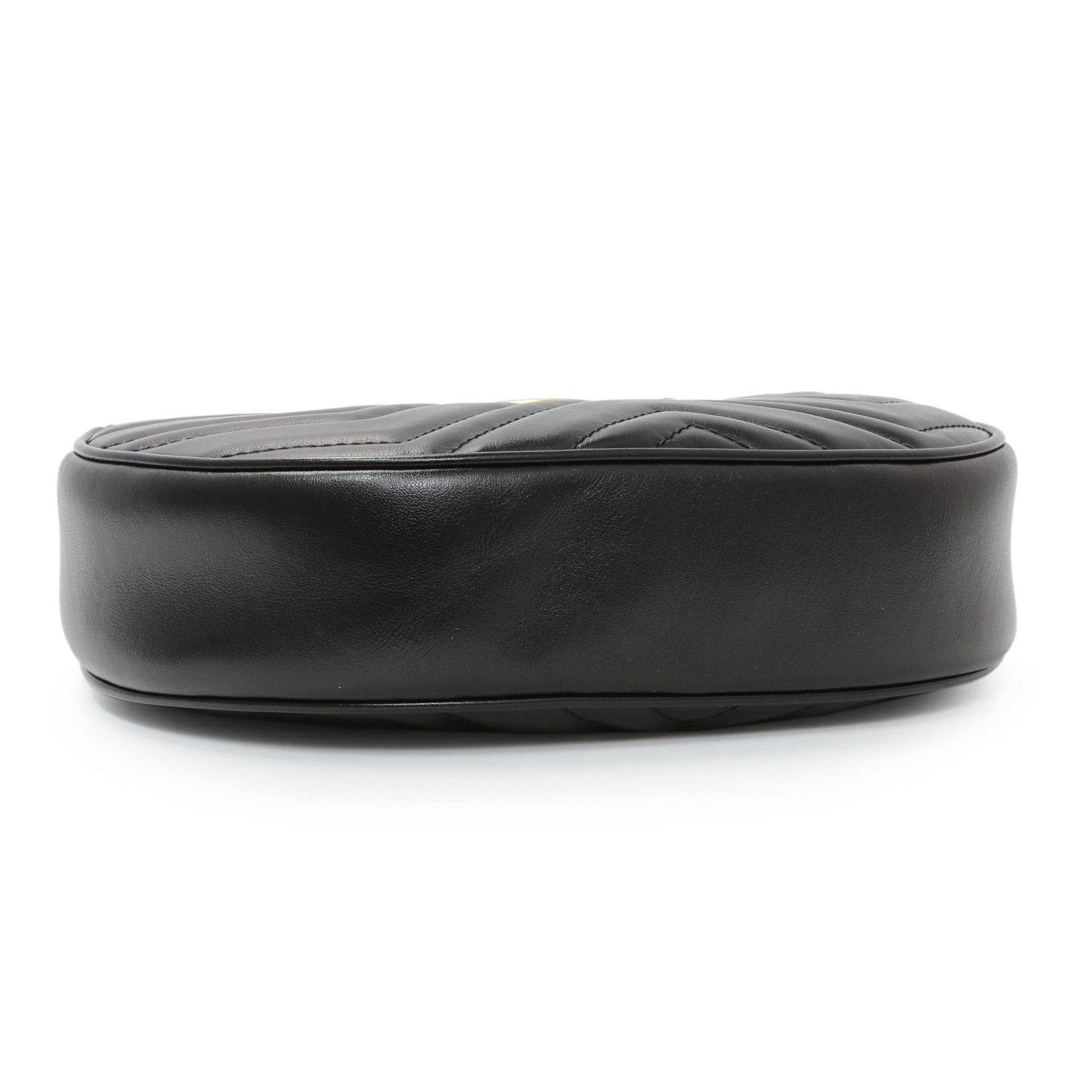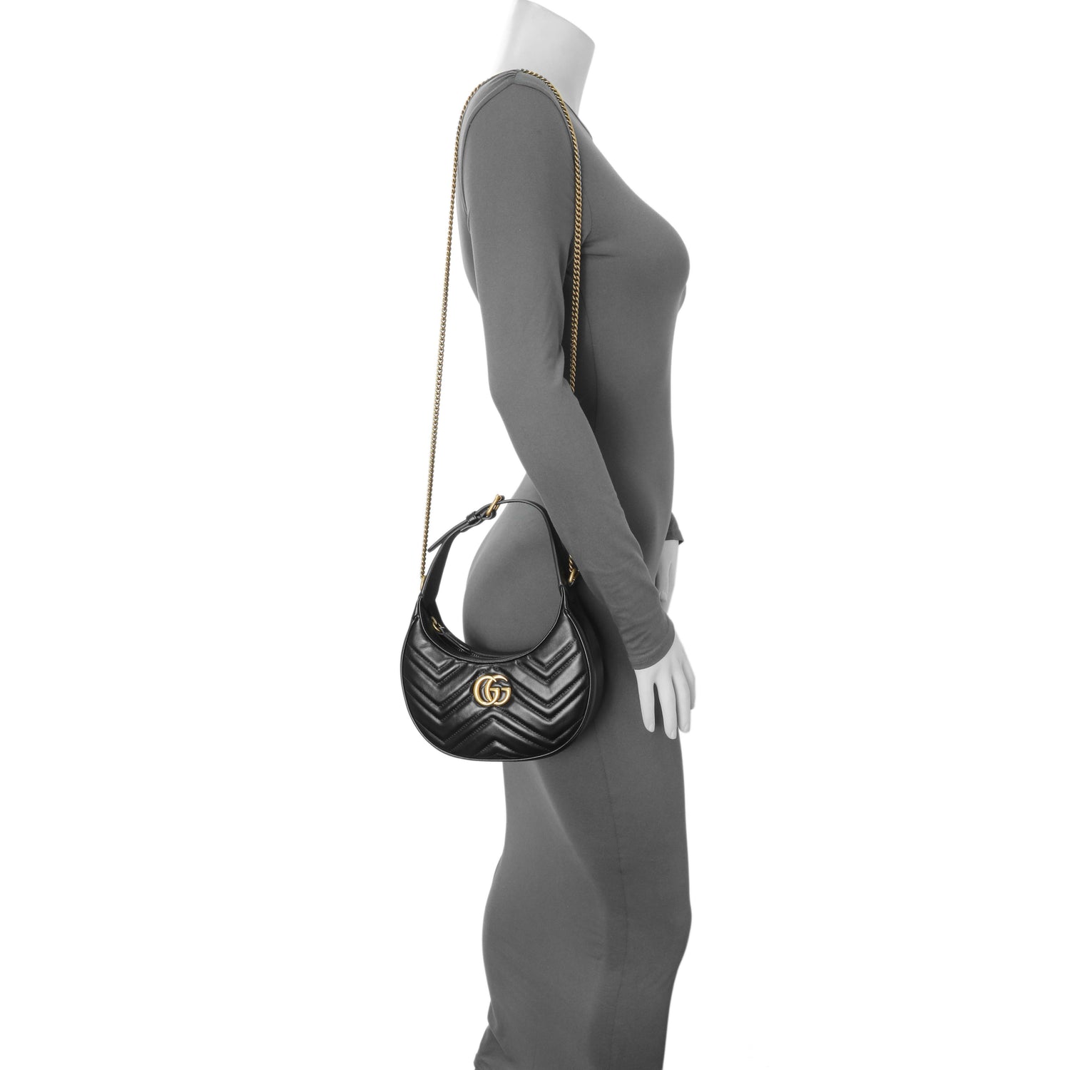 Gucci Black Calfskin Matelasse Chevron Mini GG Marmont Half Moon Hobo
