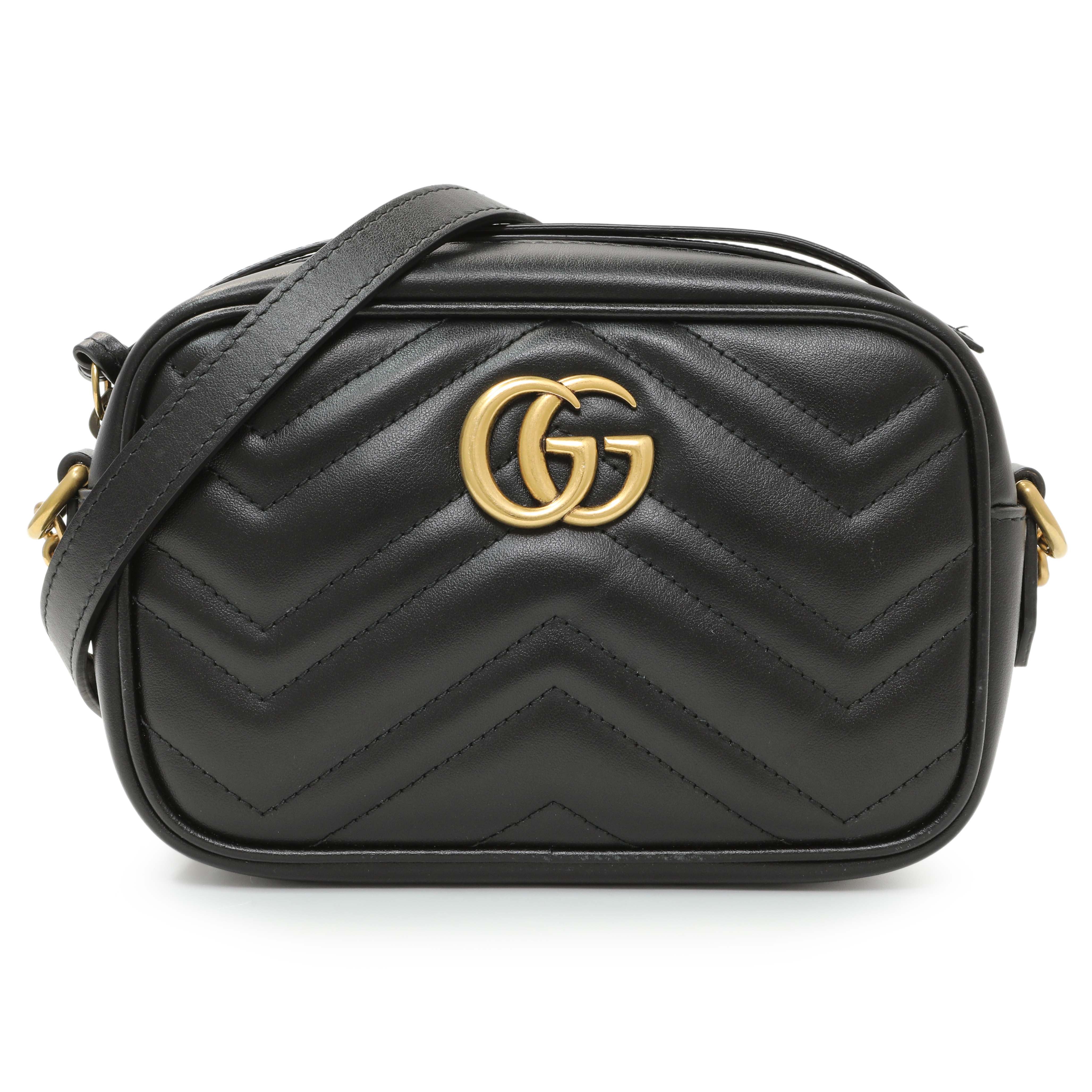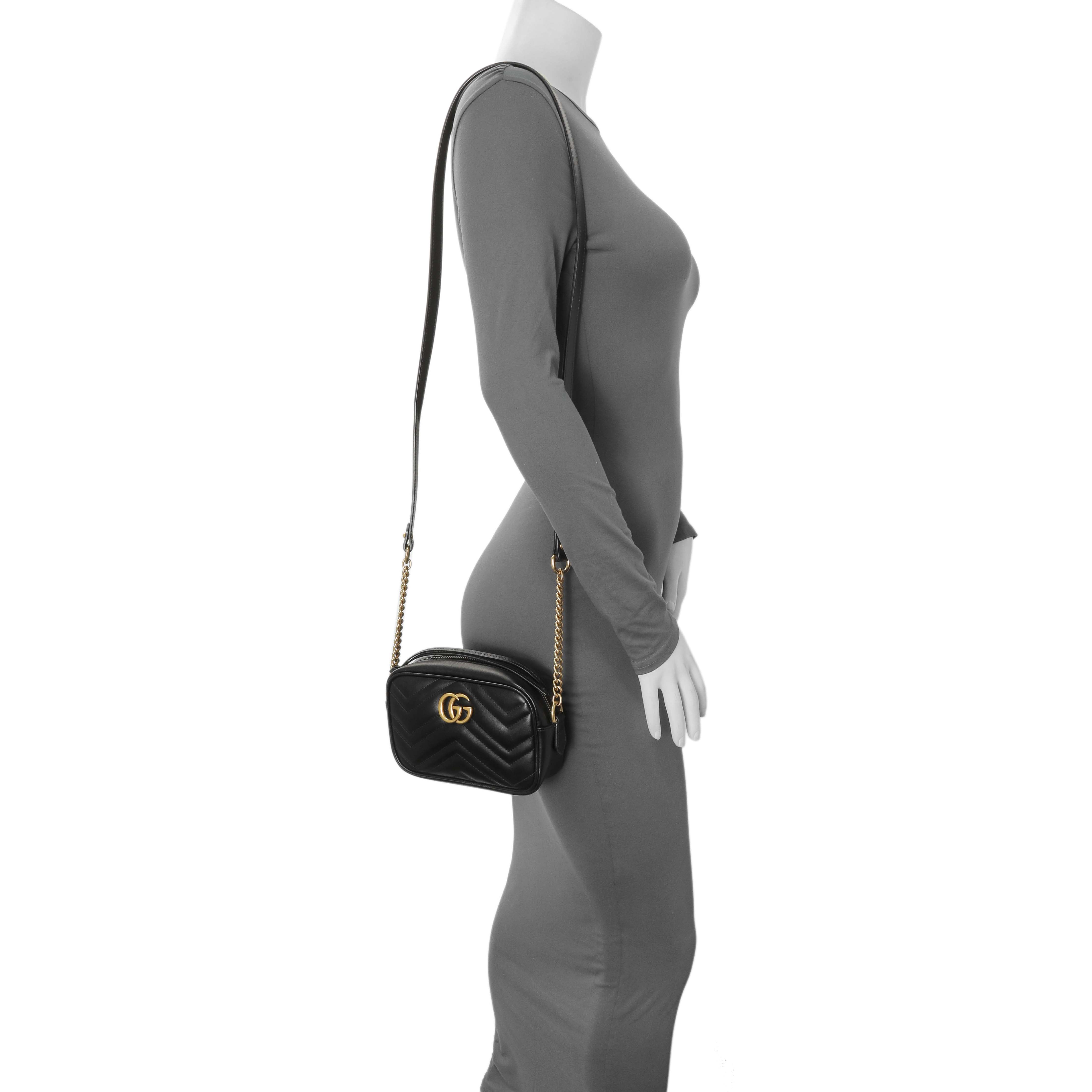 Gucci Black Calfskin Matelasse Mini GG Marmont Chain Shoulder Bag