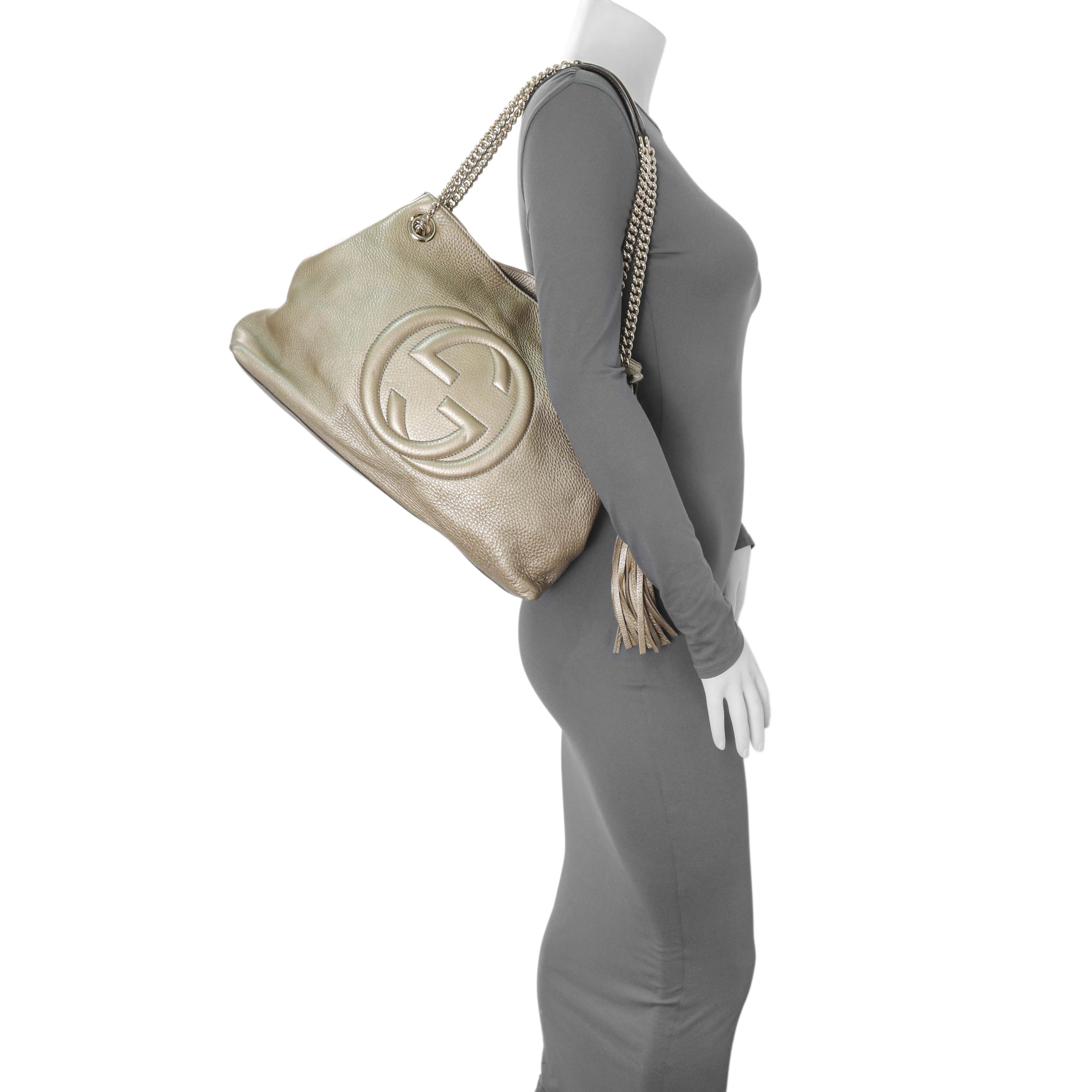 Gucci Gold Pebbled Calfskin Medium Soho Chain Shoulder Bag