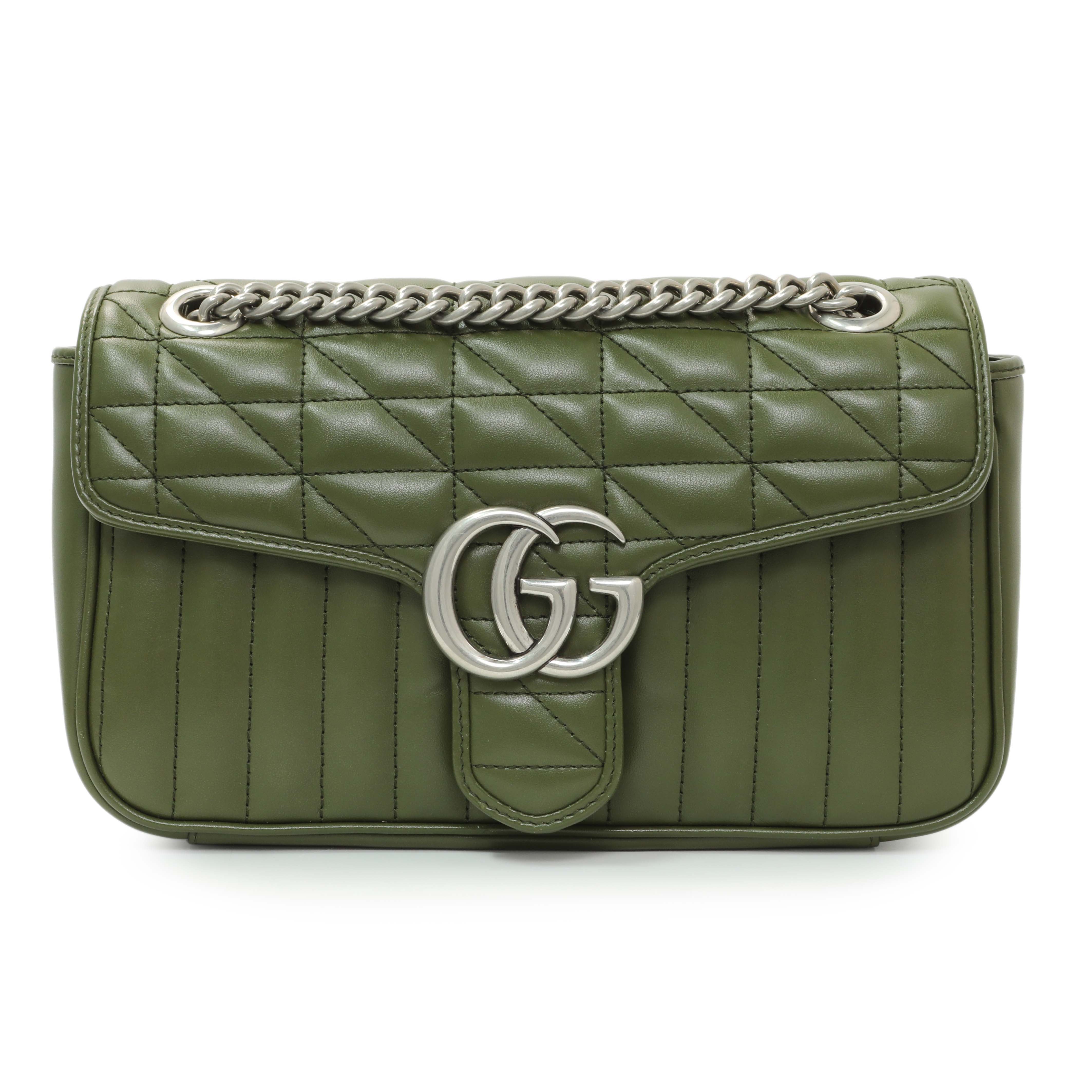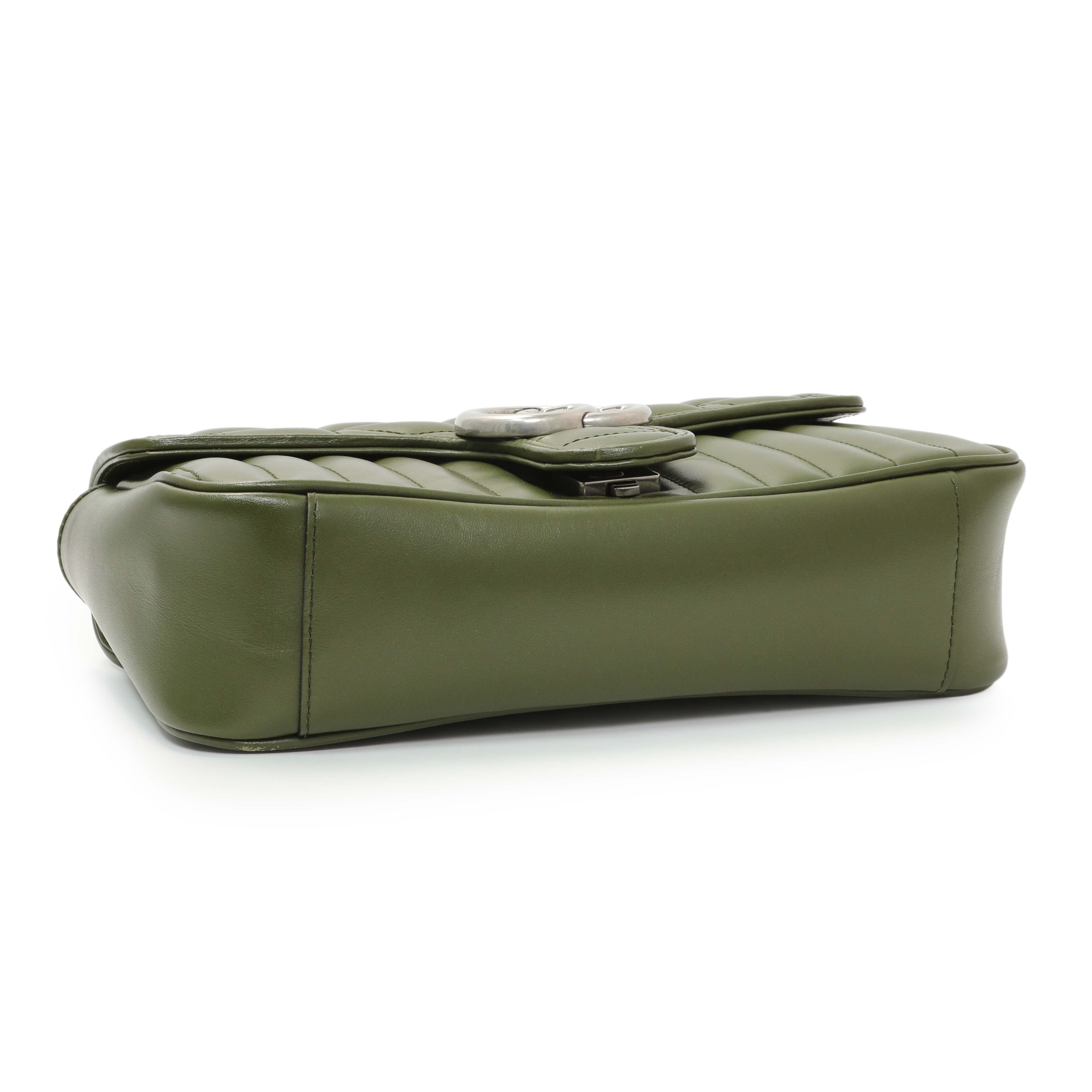 Gucci Green Calfskin Matelasse Aria Small GG Marmont Shoulder Bag