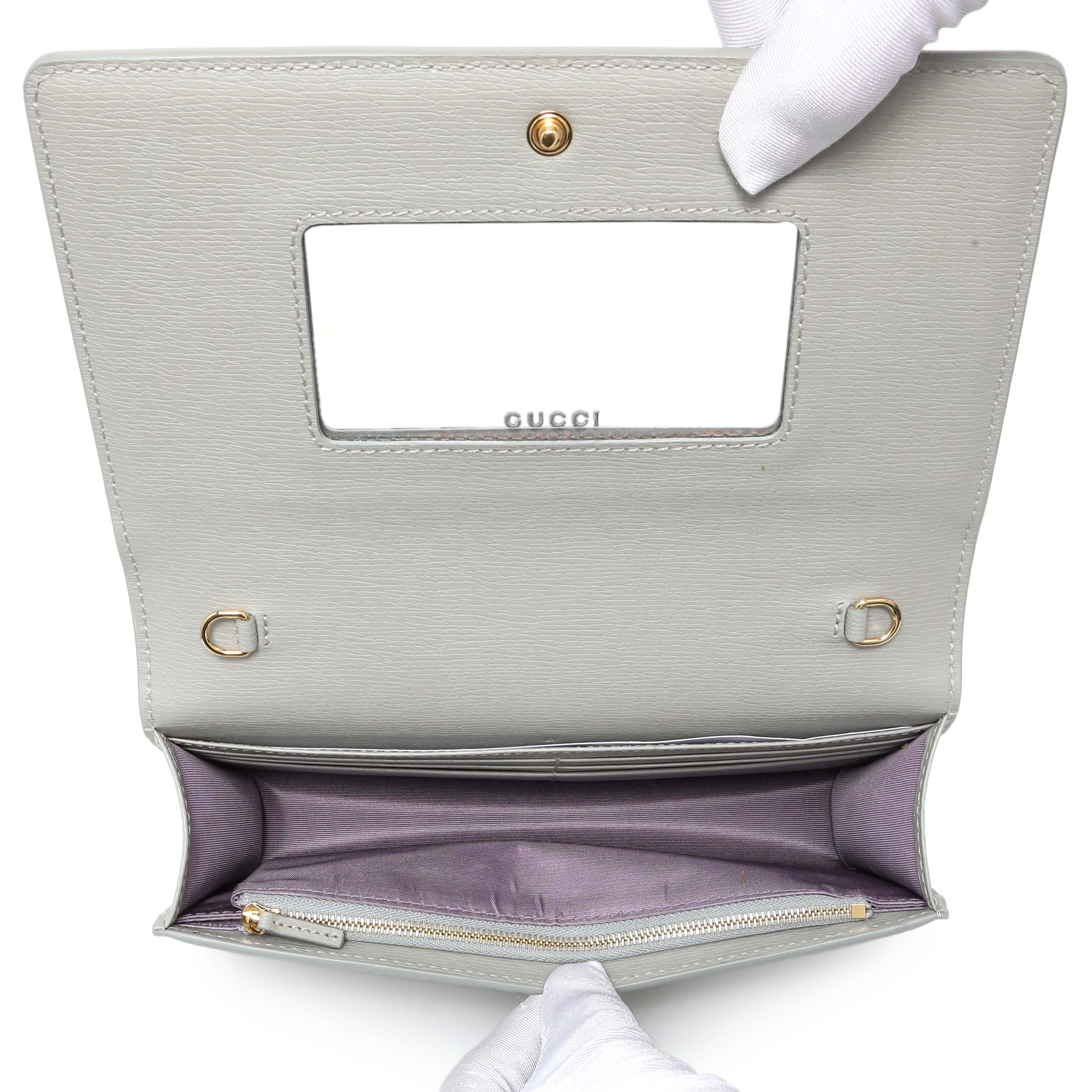 Gucci Grey Textured Calfskin Script Logo Chain Wallet has been sold. If you are looking for something similar, please join the waitlist below.