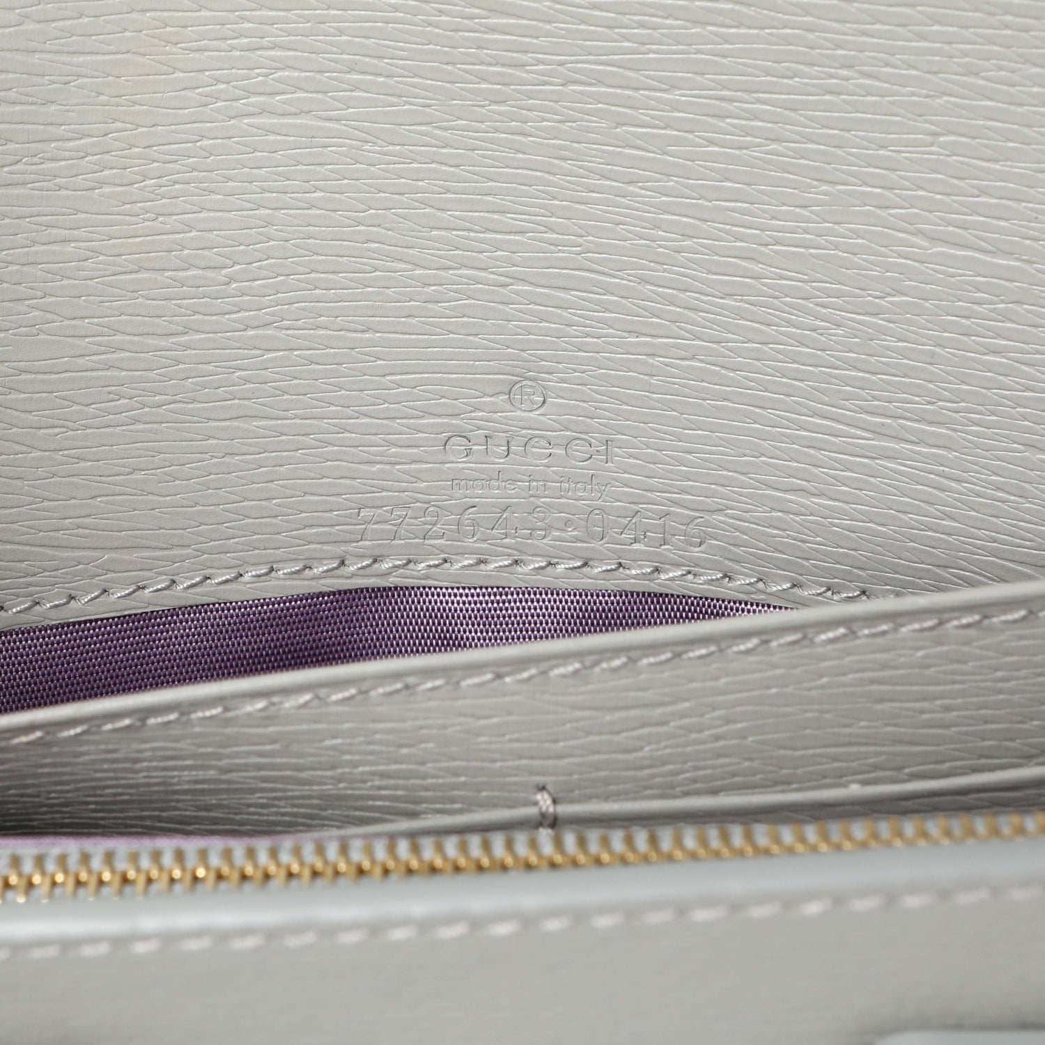 Gucci Grey Textured Calfskin Script Logo Chain Wallet is backordered and will ship as soon as it is back in stock.