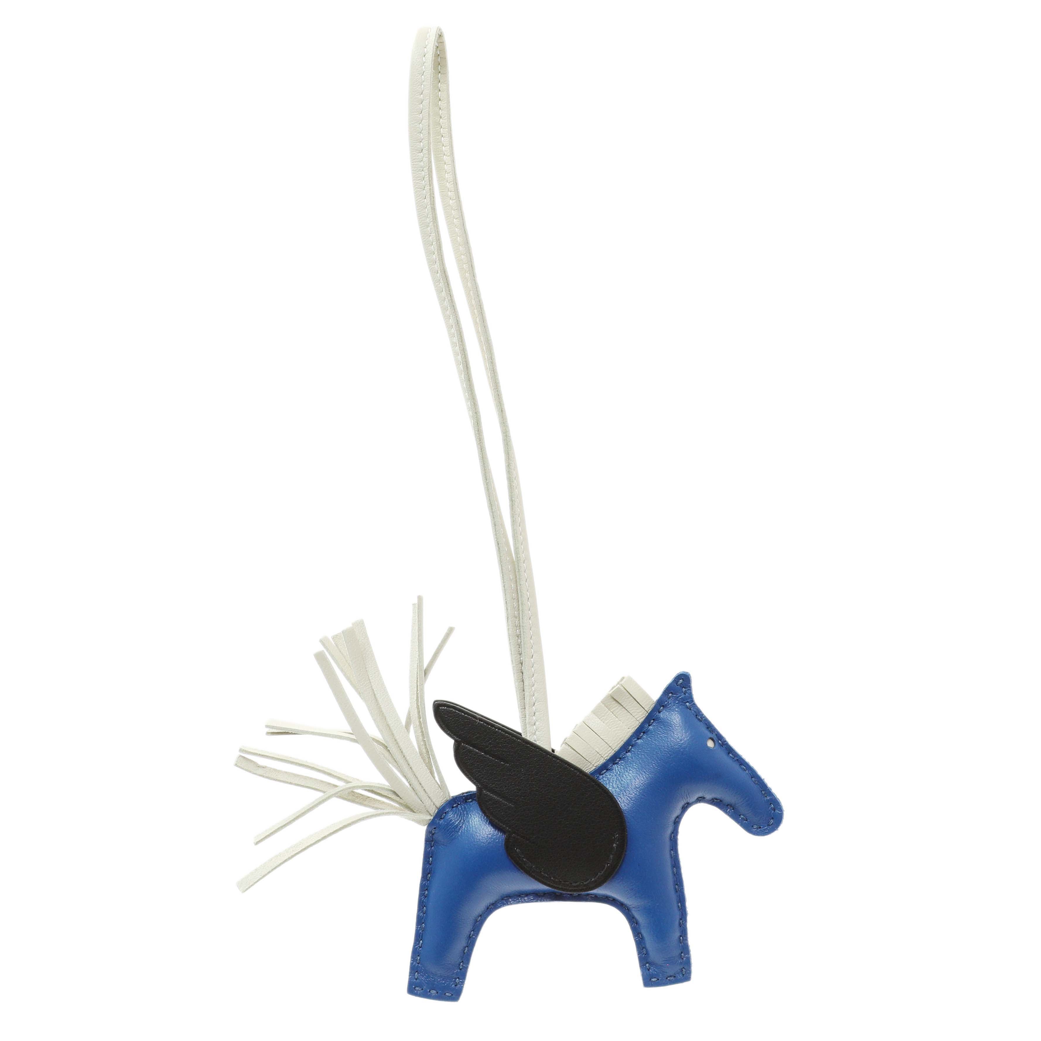 Hermes Milo Blue Black Lambskin Grigri Rodeo Pegase Horse Bag Charm PM