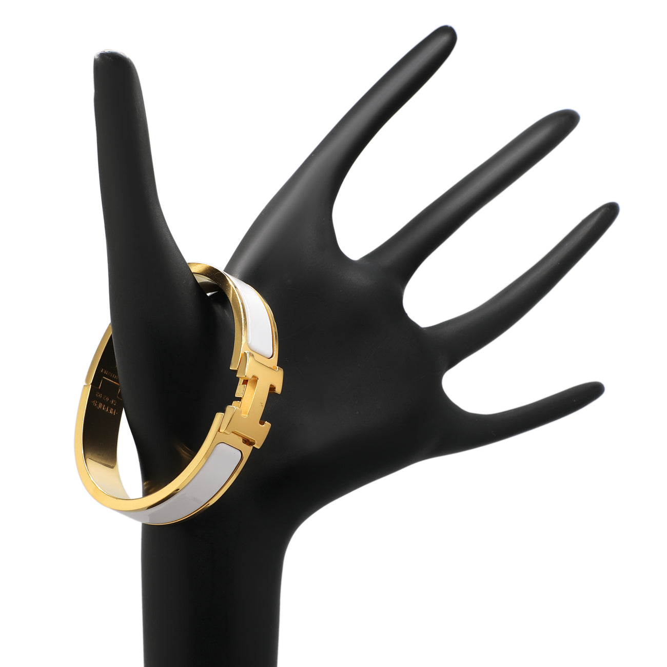 Hermes White Enamel Clic H Bracelet is backordered and will ship as soon as it is back in stock.