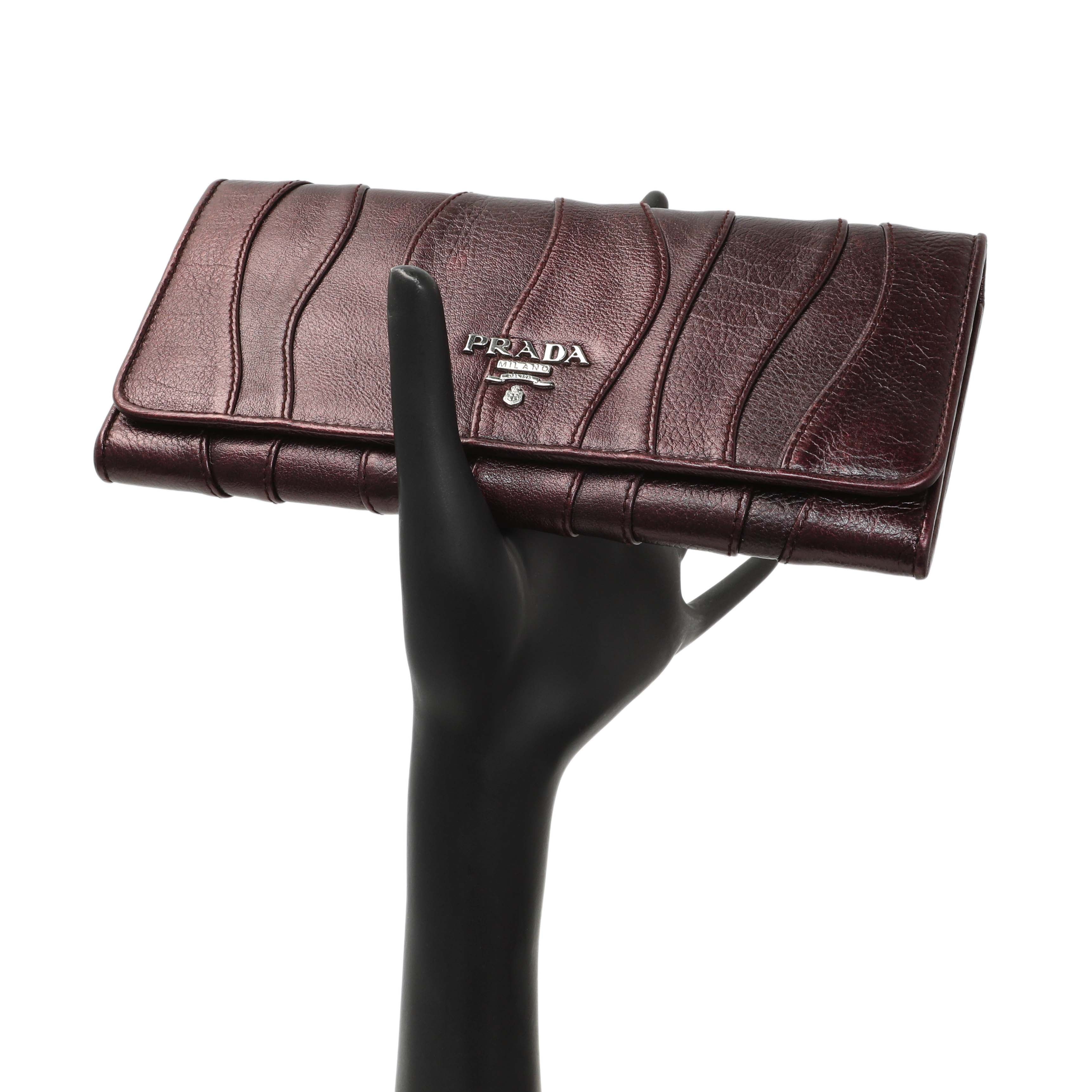 Prada Burgundy Nappa Mordore Stripes Continental Wallet