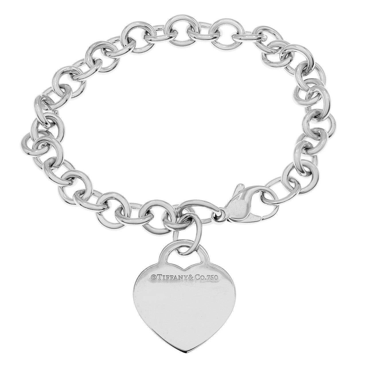 Authentic Tiffany & Co. 18K White Gold & Diamond Heart Tag Bracelet