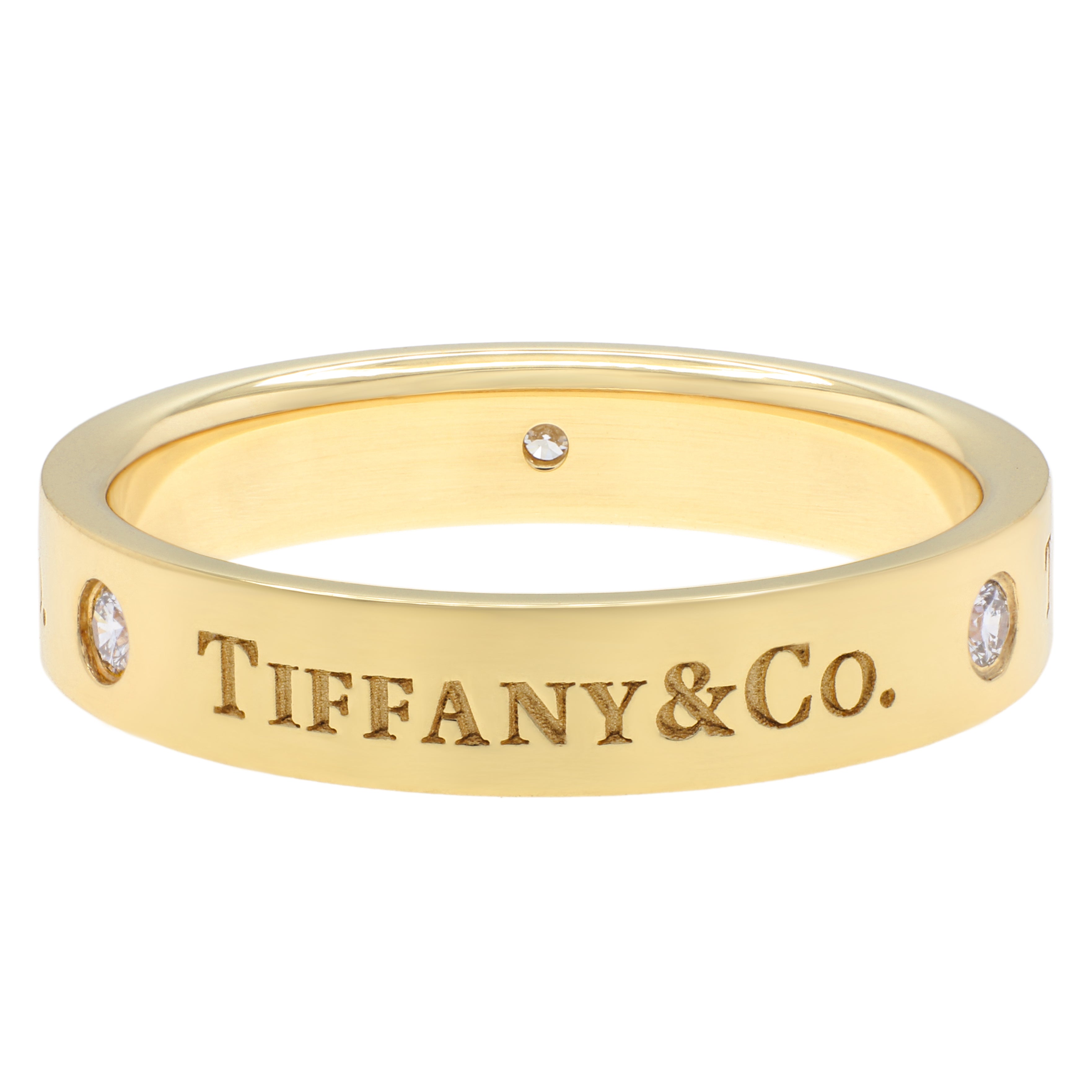 Tiffany & Co 18K Yellow Gold Diamond 4mm T&Co Band Ring