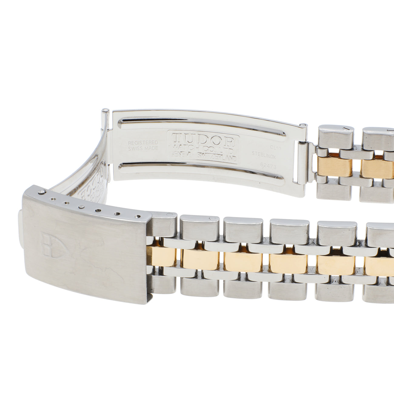 - Bracelet: Stainless steel, 18K yellow gold with folding clasp