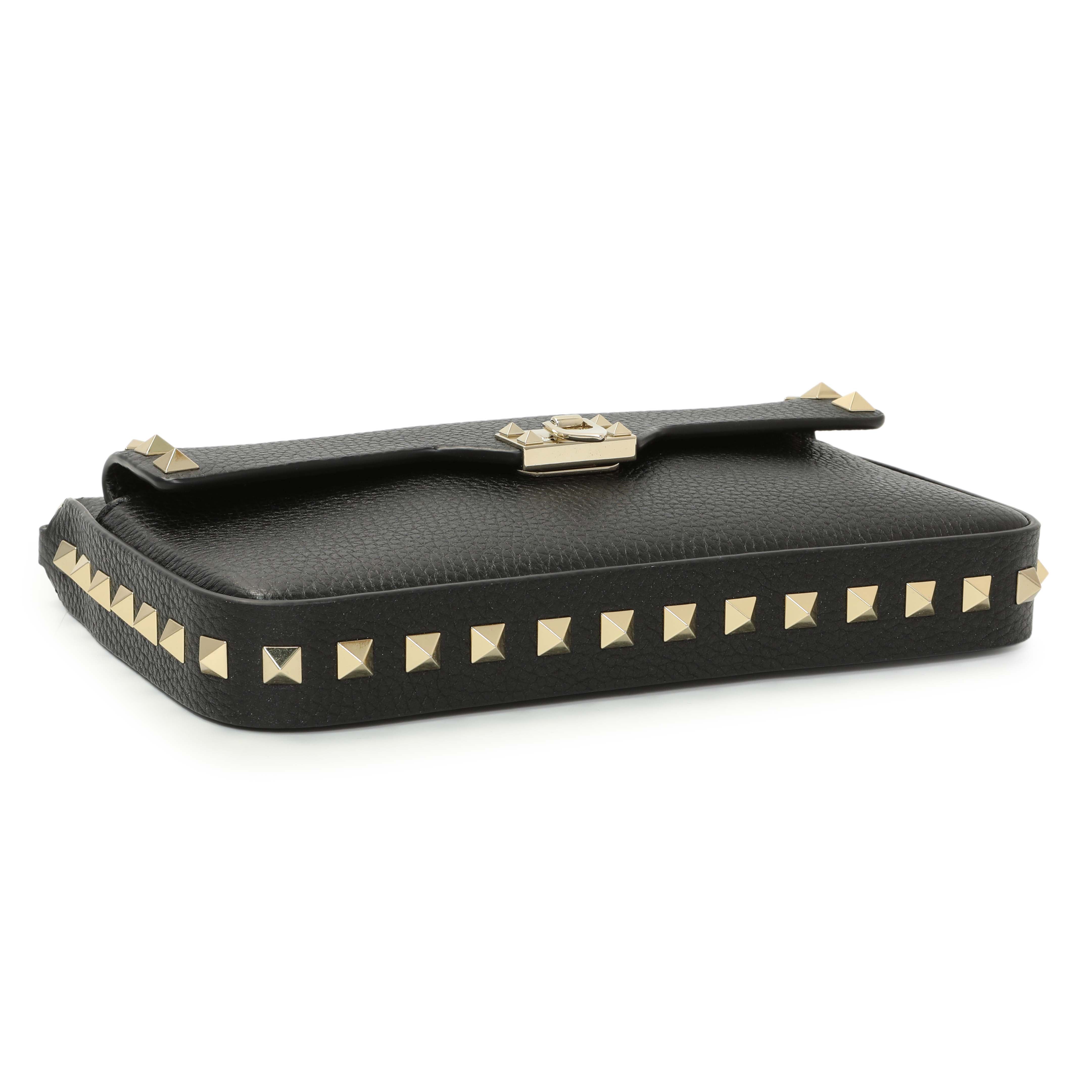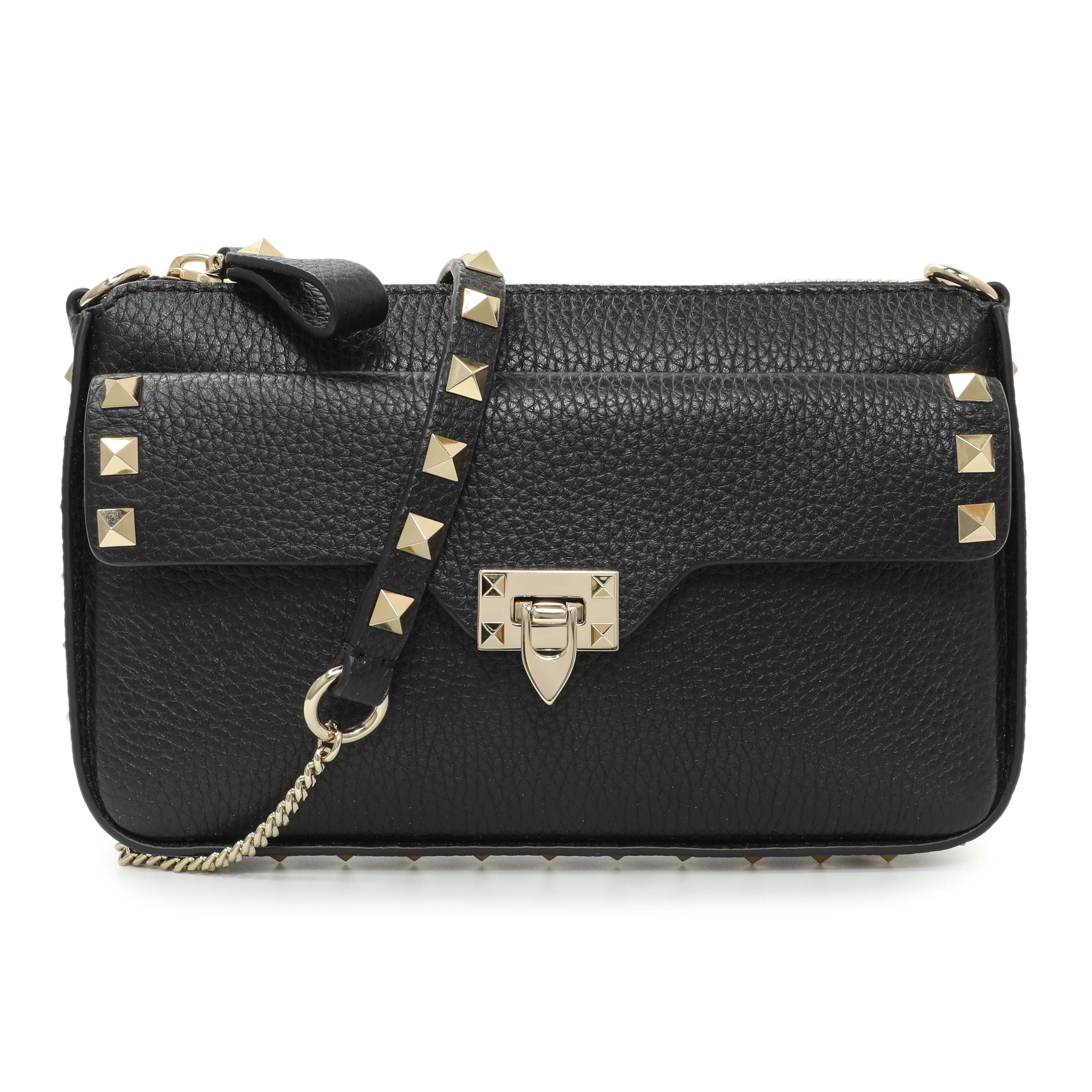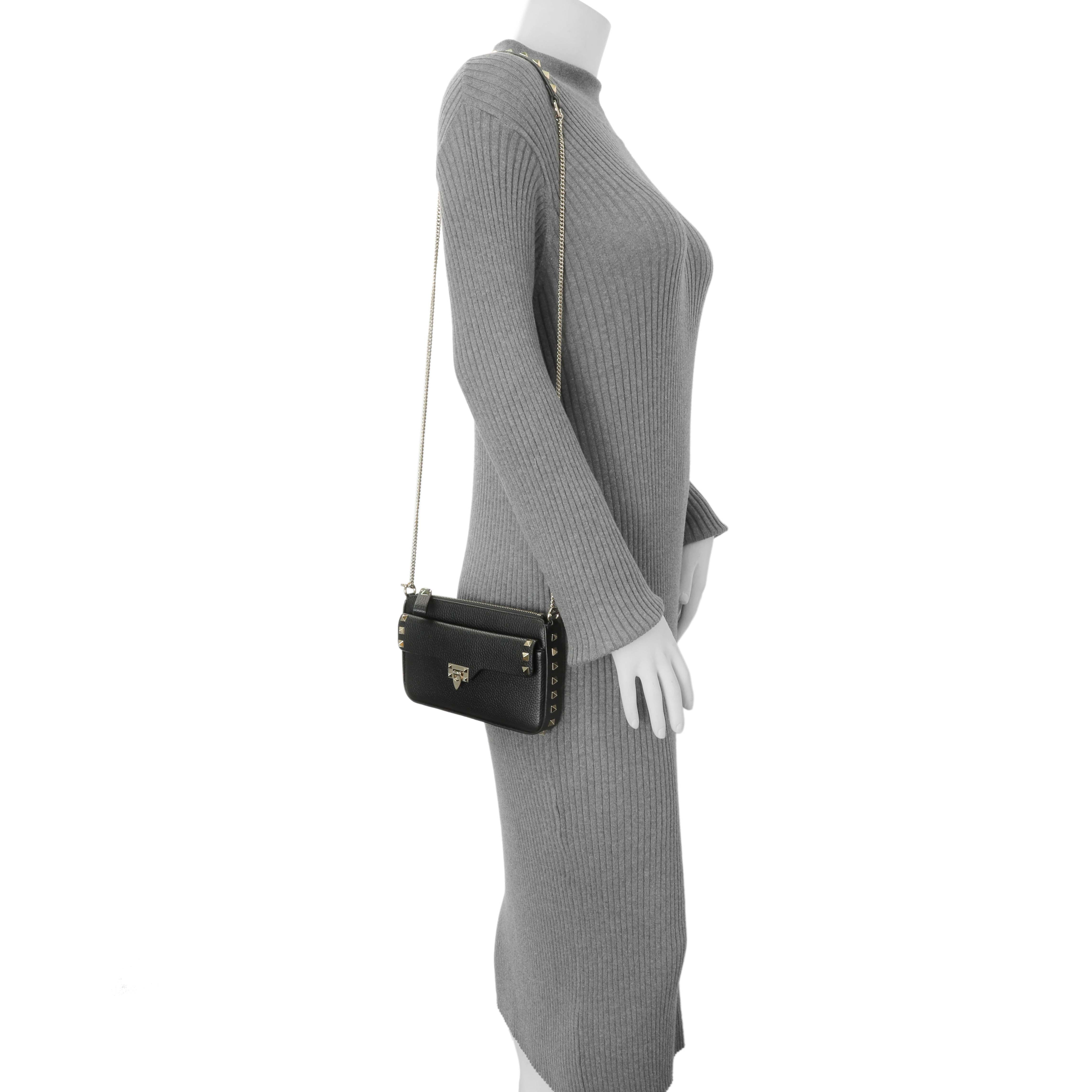 Valentino Black Grainy Calfskin Rockstud Chain Crossbody Bag