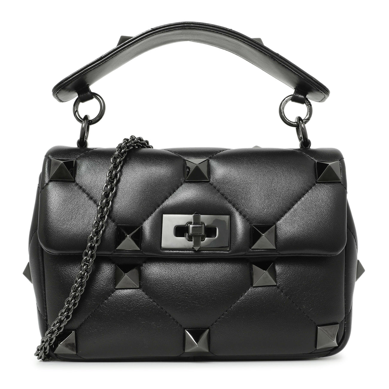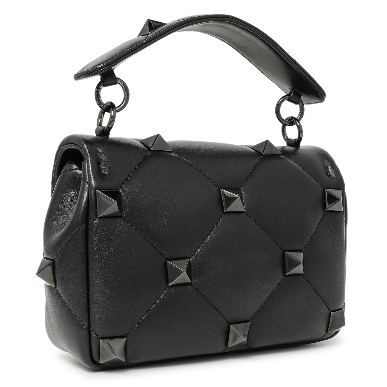 Valentino Black Nappa Monochrome Medium Roman Stud Shoulder Bag