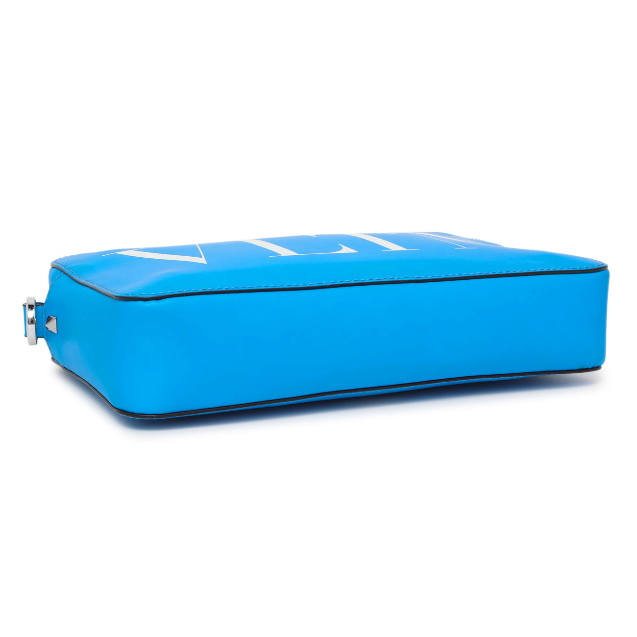 Valentino Blue Calfskin VLTN Print Crossbody Bag