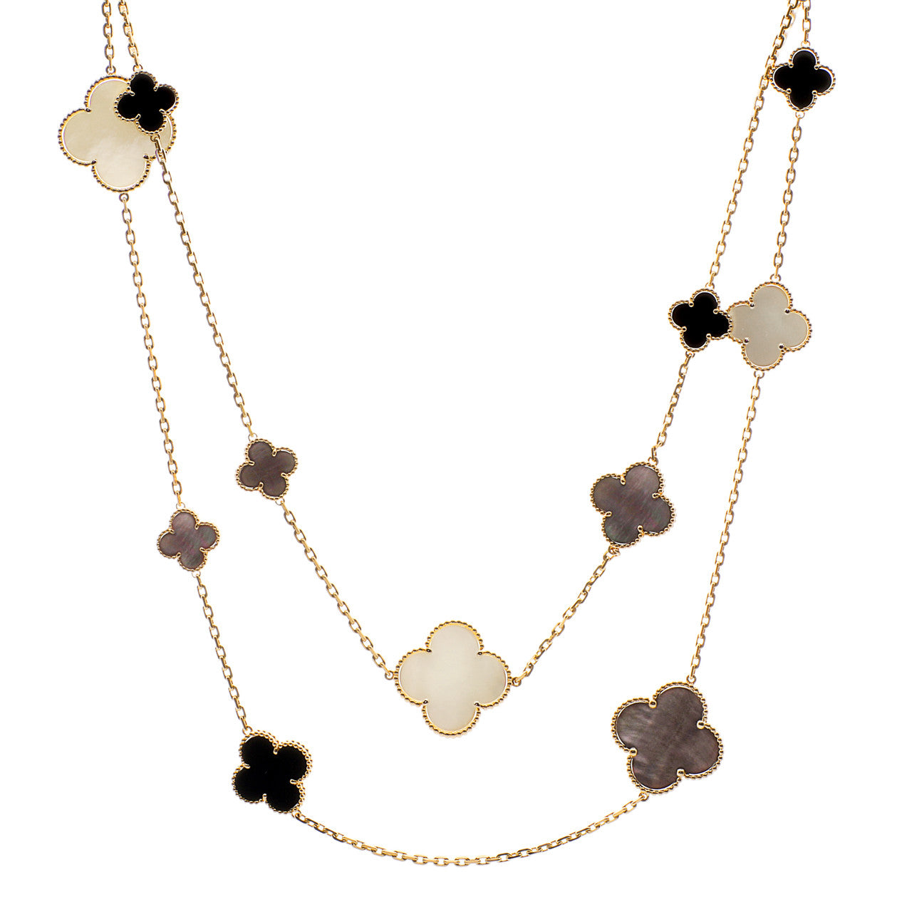 Van Cleef & Arpels 18K Yellow Gold Mother of Pearl Onyx Magic Alhambra 16 Motif Necklace