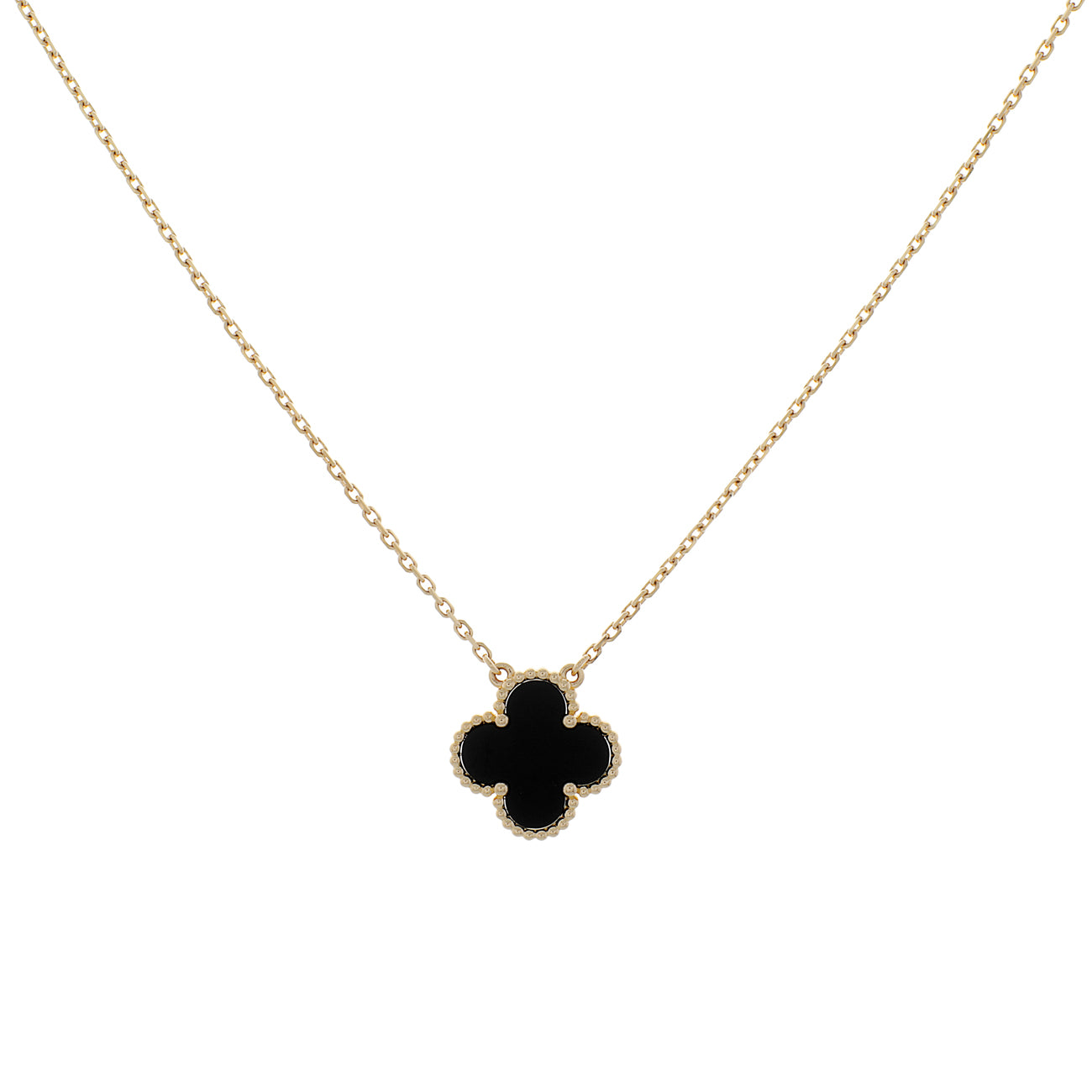 Van Cleef & Arpels 18K Yellow Gold & Onyx Vintage Alhambra Pendant Necklace