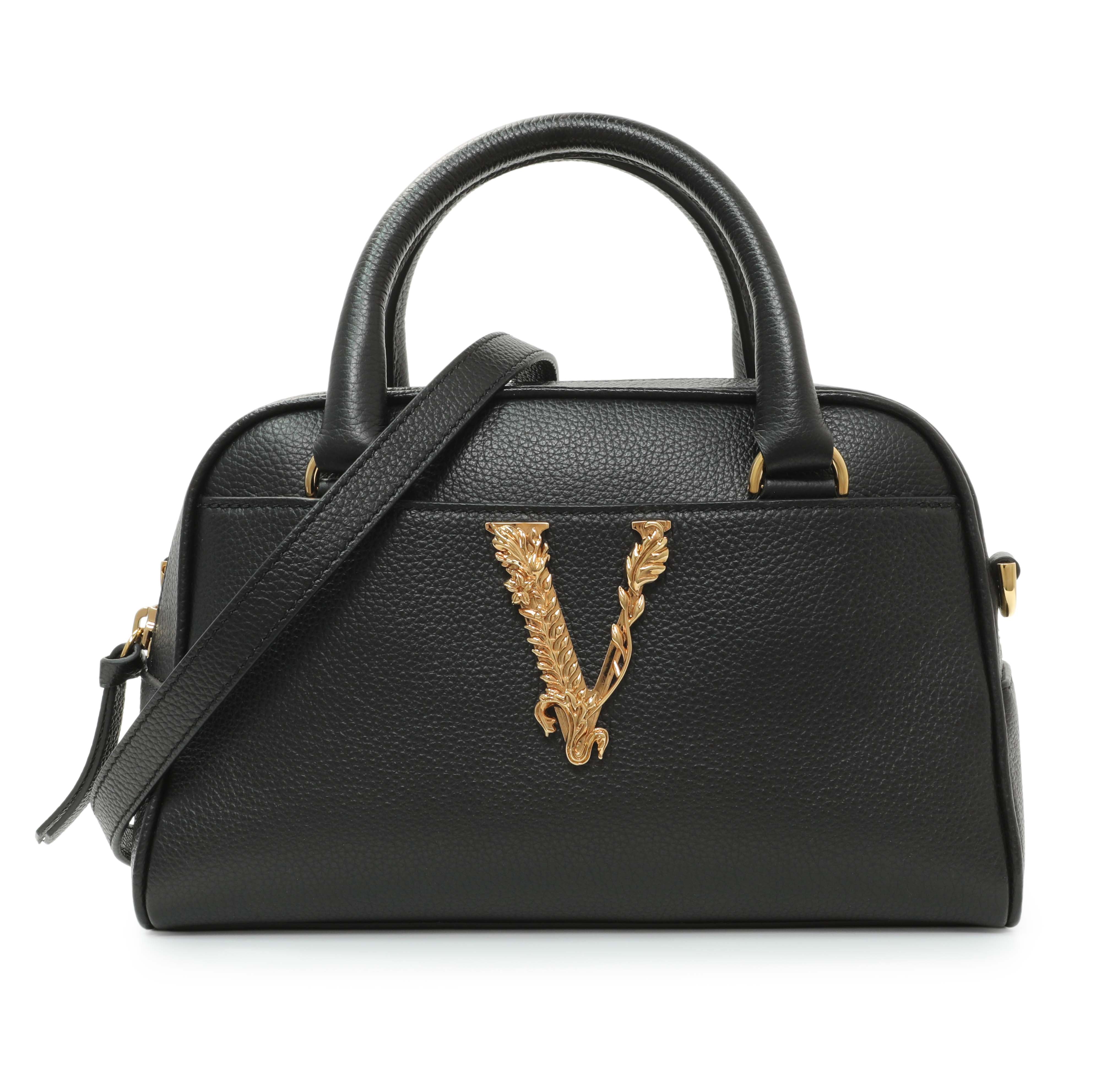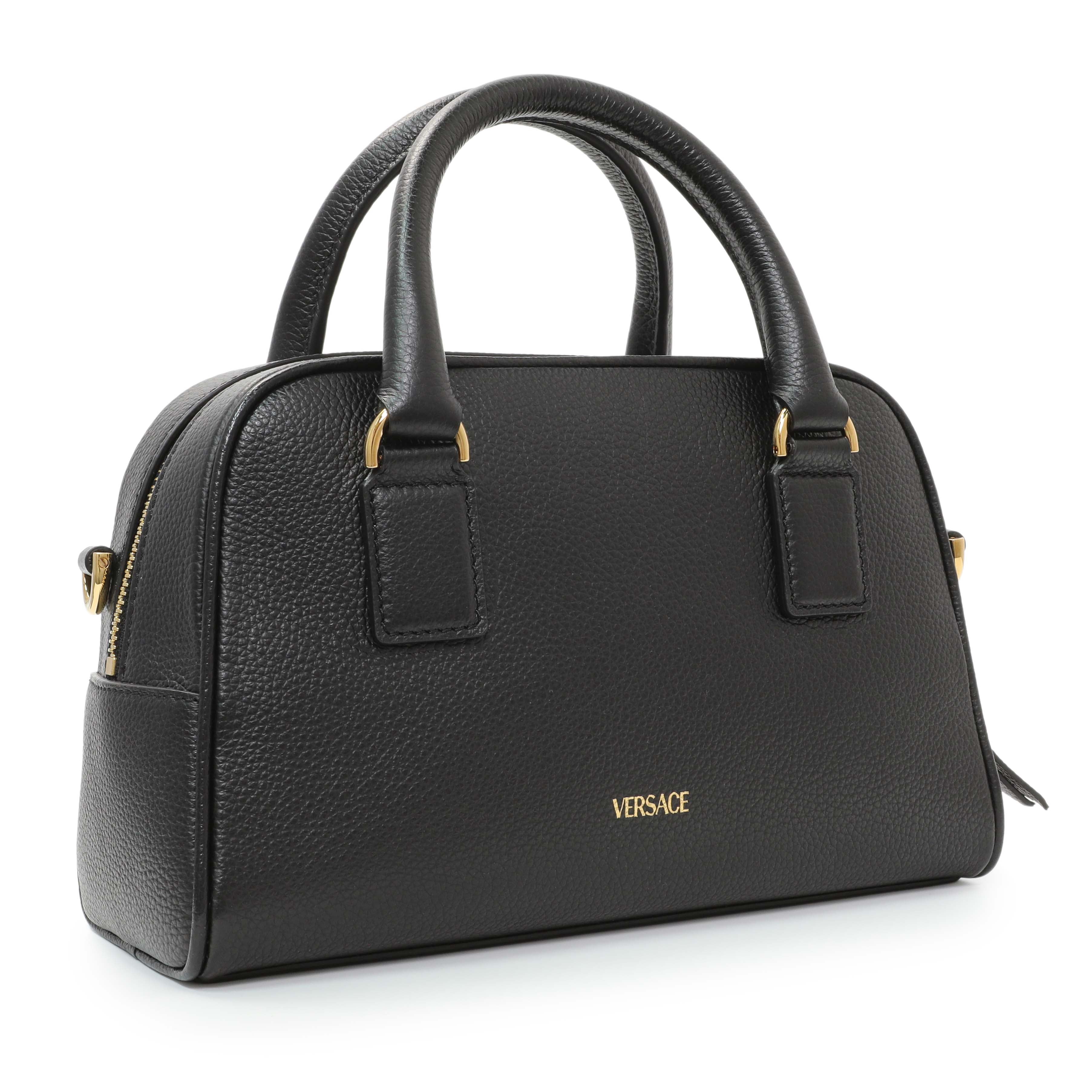 Versace Black Grained Calfskin Virtus Small Bowling Bag