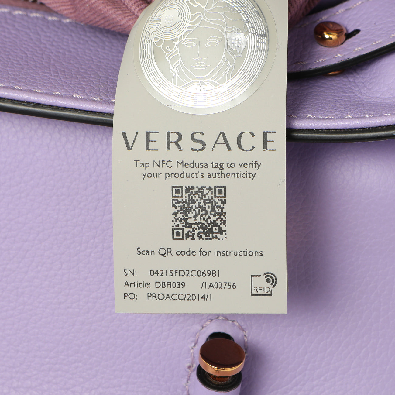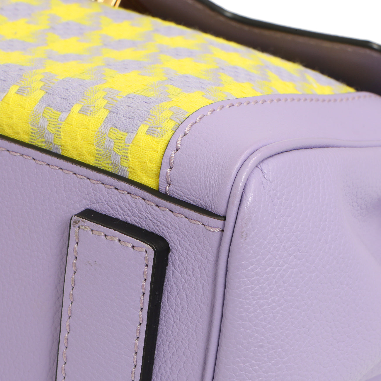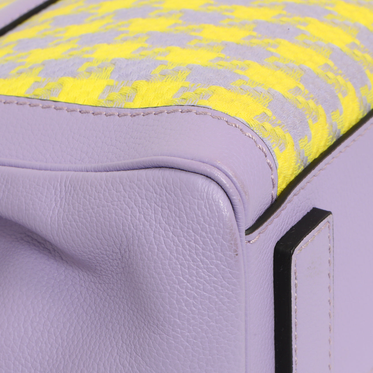 Versace Lilac Yellow Calfskin Canvas Houndstooth Medium La Medusa Top Handle Bag